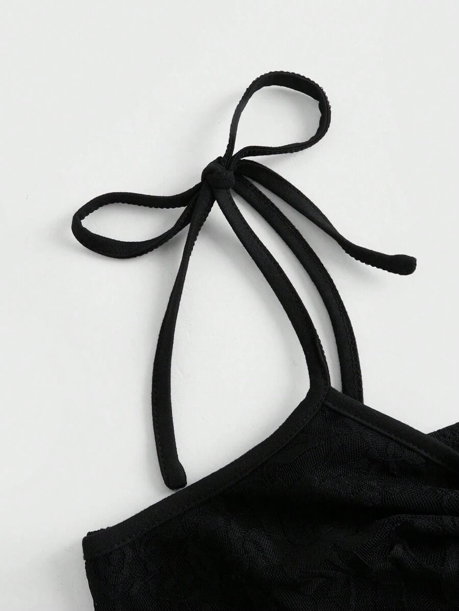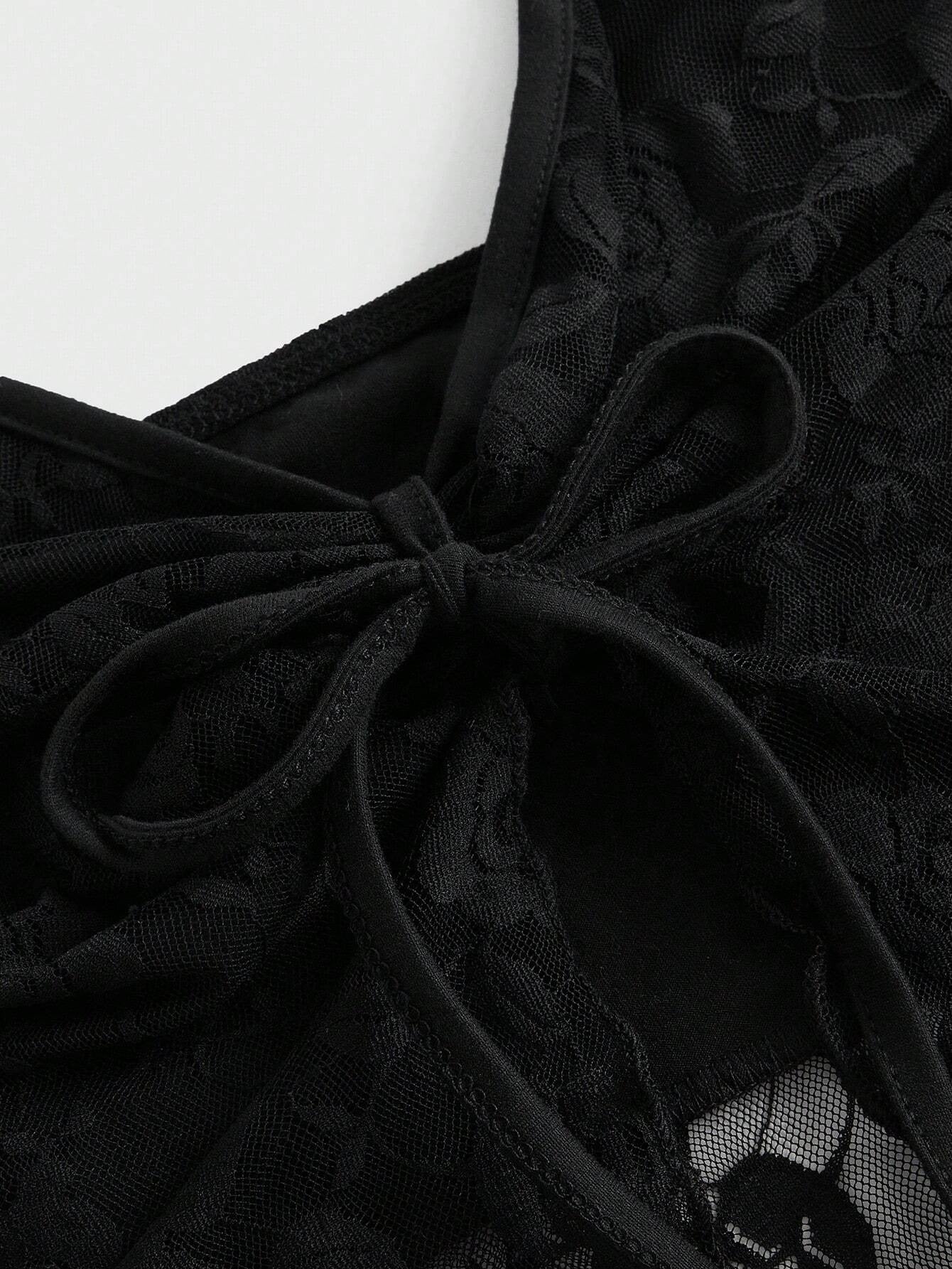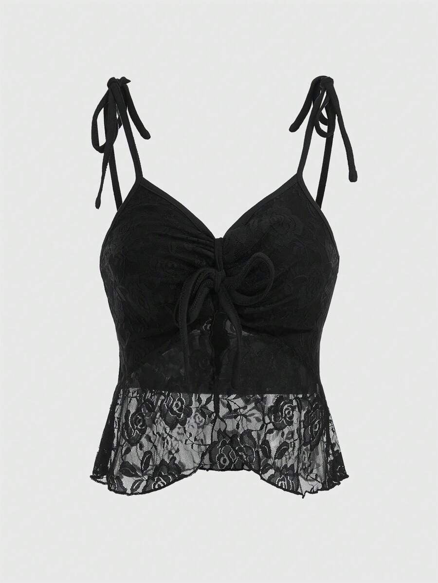 ROMWE Goth Top De Correa De Cami Con Encaje Y Lazo En El Hombro Con Contraste Mujer