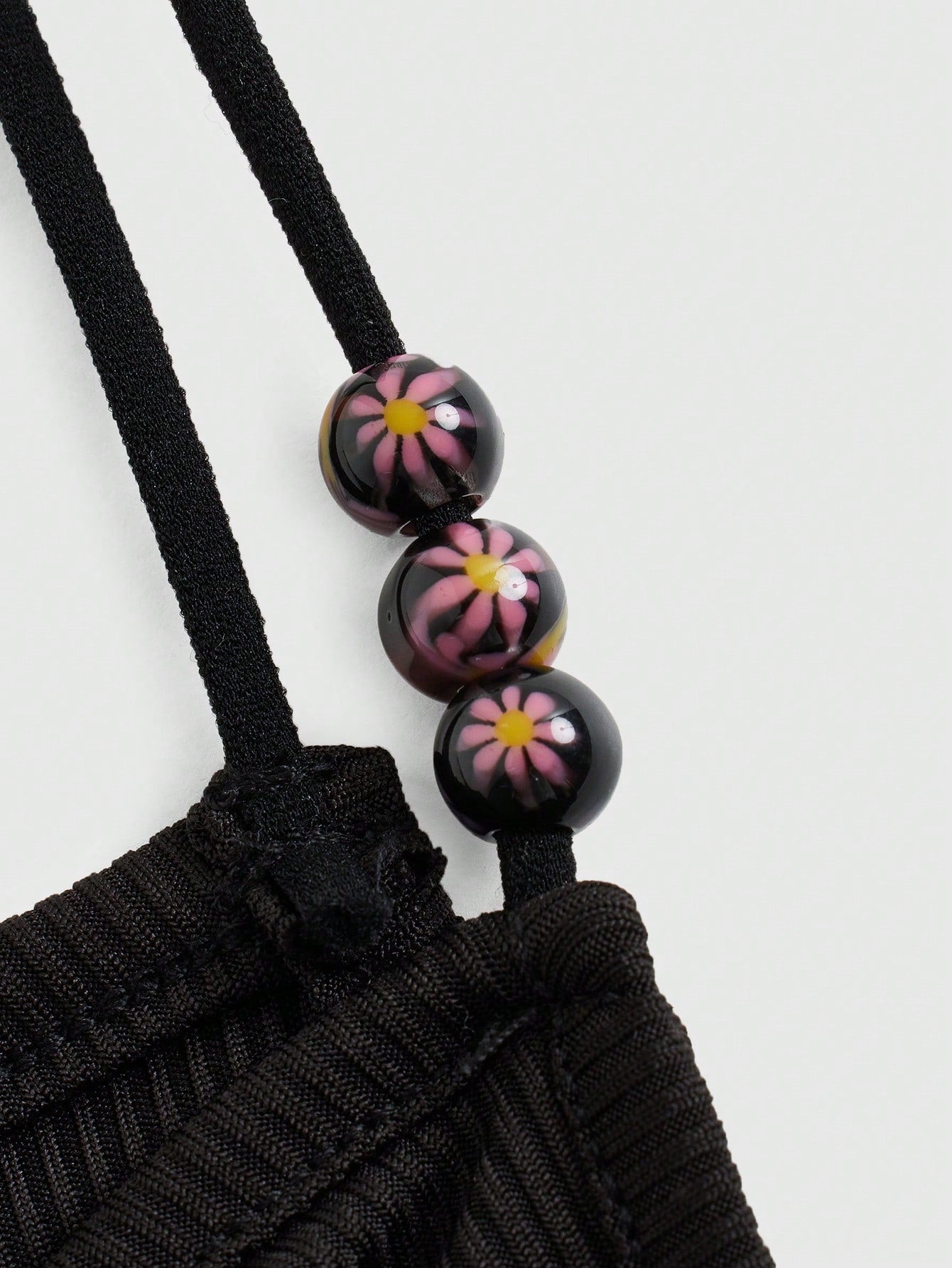 ROMWE Goth Top de tirantes negro ajustado de verano con fruncidos y cuentas