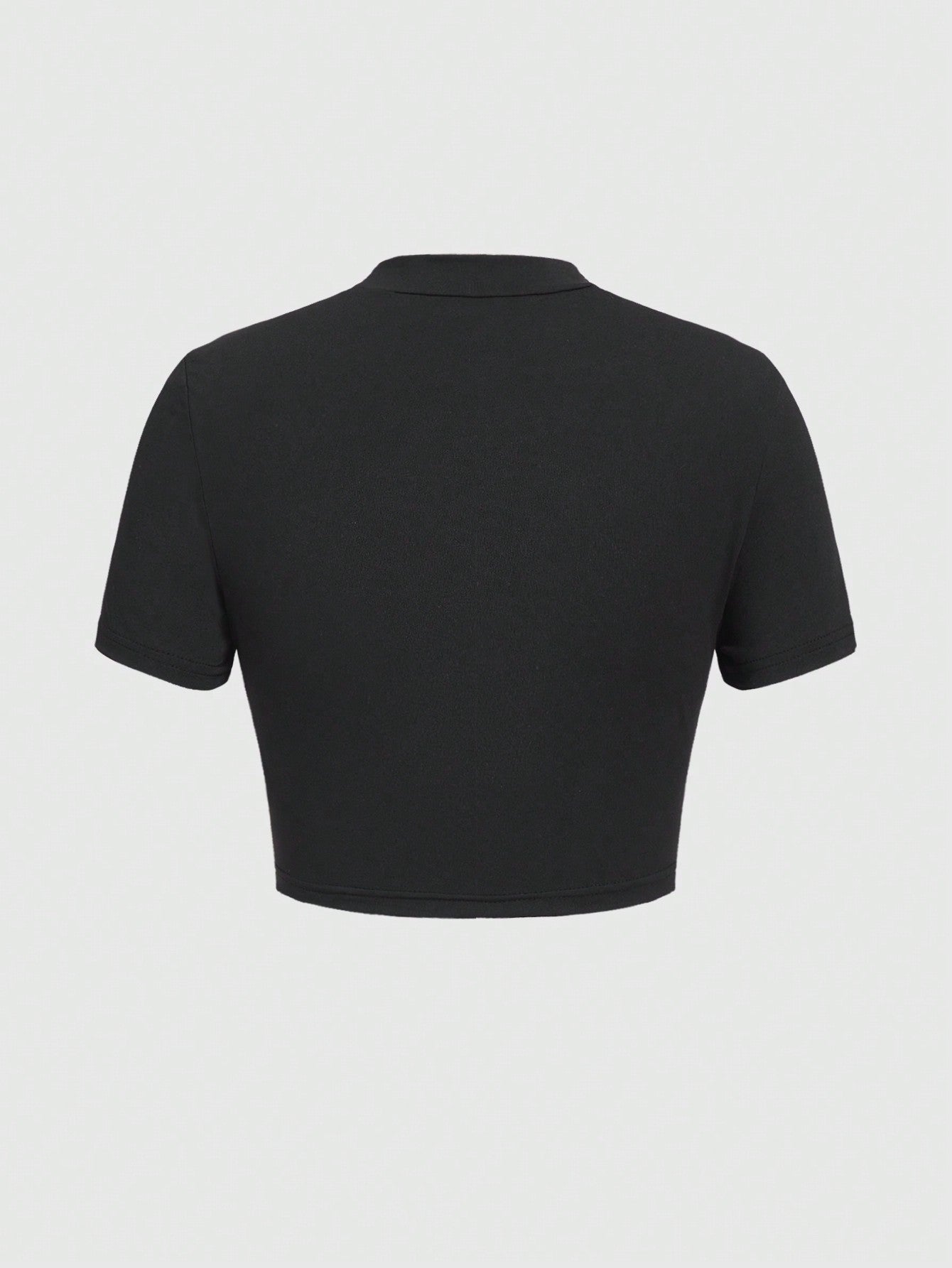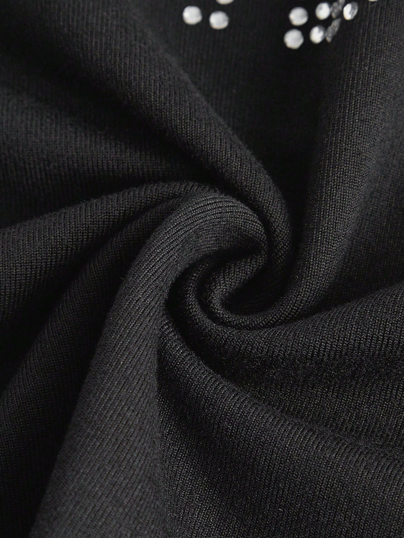 ROMWE Grunge Punk Camiseta de mujeres de manga corta con tachuela diamante de imitación