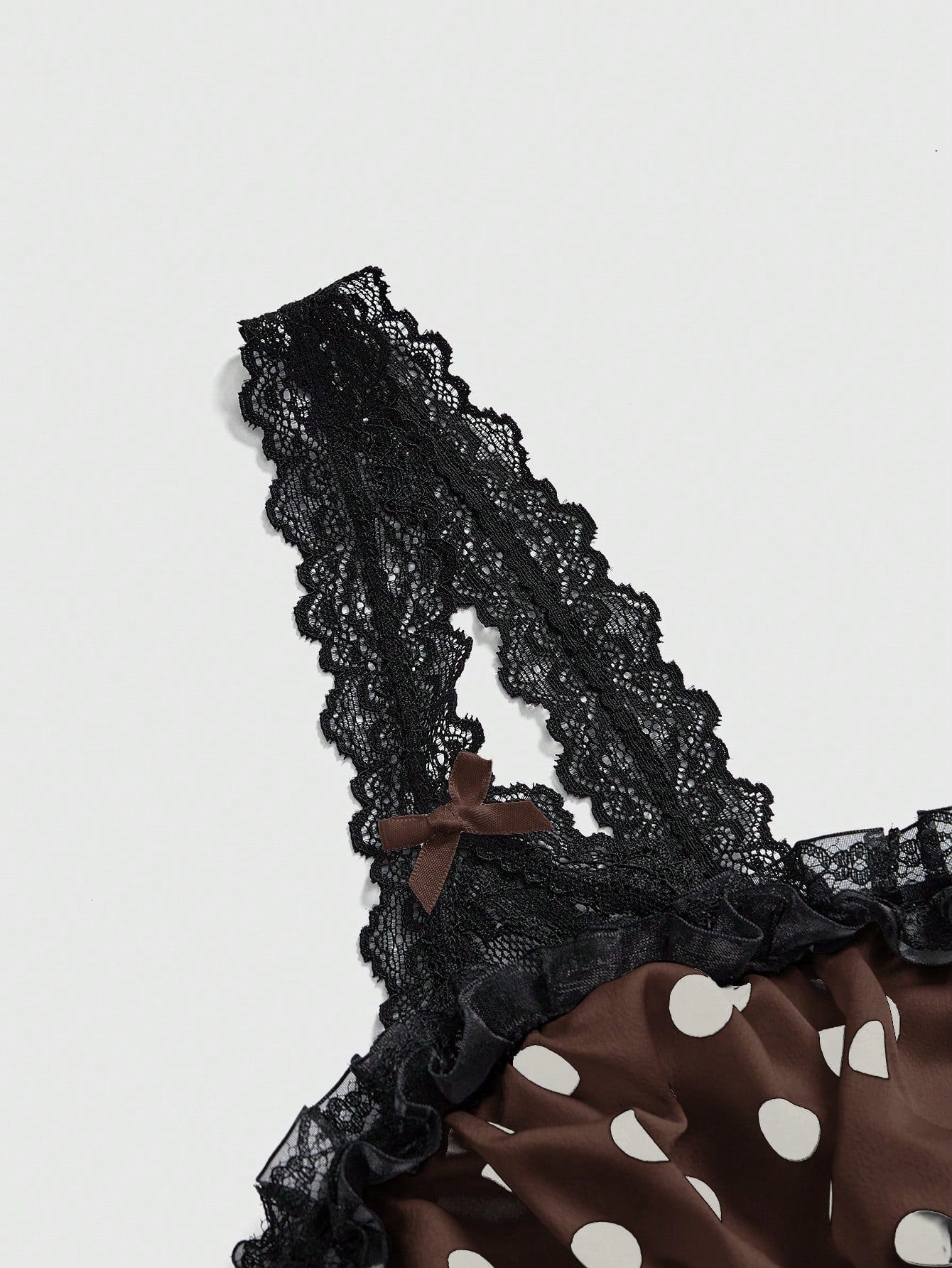 ROMWE Grunge Punk Camisola de mujer con contraste de encaje y lunares para el Día de San Valentín, estilo Y2K