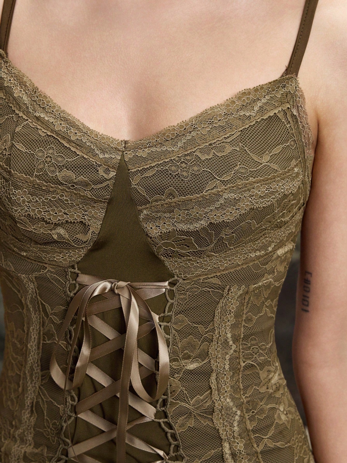 ROMWE Grunge Punk Chaleco tipo camiseta con diseño de cordones desgastado estilo grunge Y2K para mujeres
