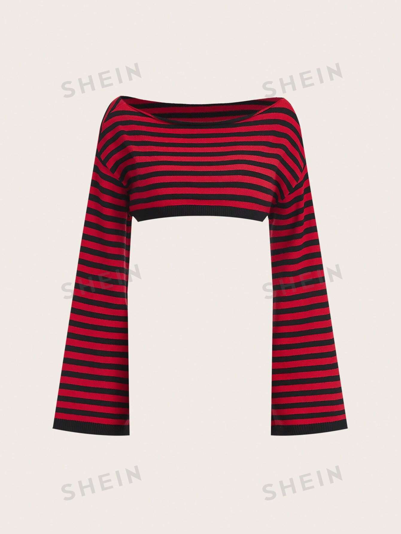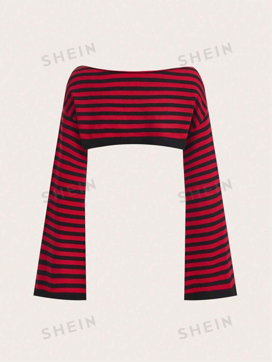 ROMWE Grunge Punk Jersey crop con patrón de rayas de manga campana