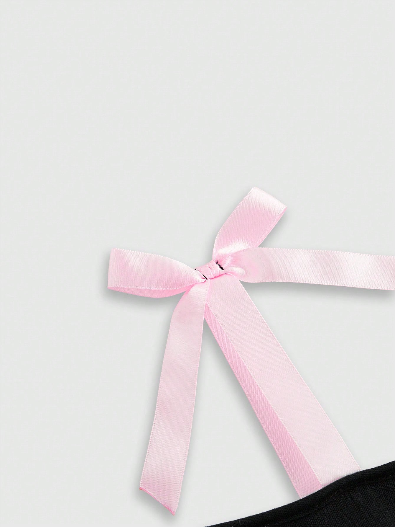 ROMWE Grunge Punk Sudadera holgada para mujer de manga larga con bloque de color, logo bordado, cuello asimétrico y lazo, estilo callejero para el Día de San Valentín Gyaru