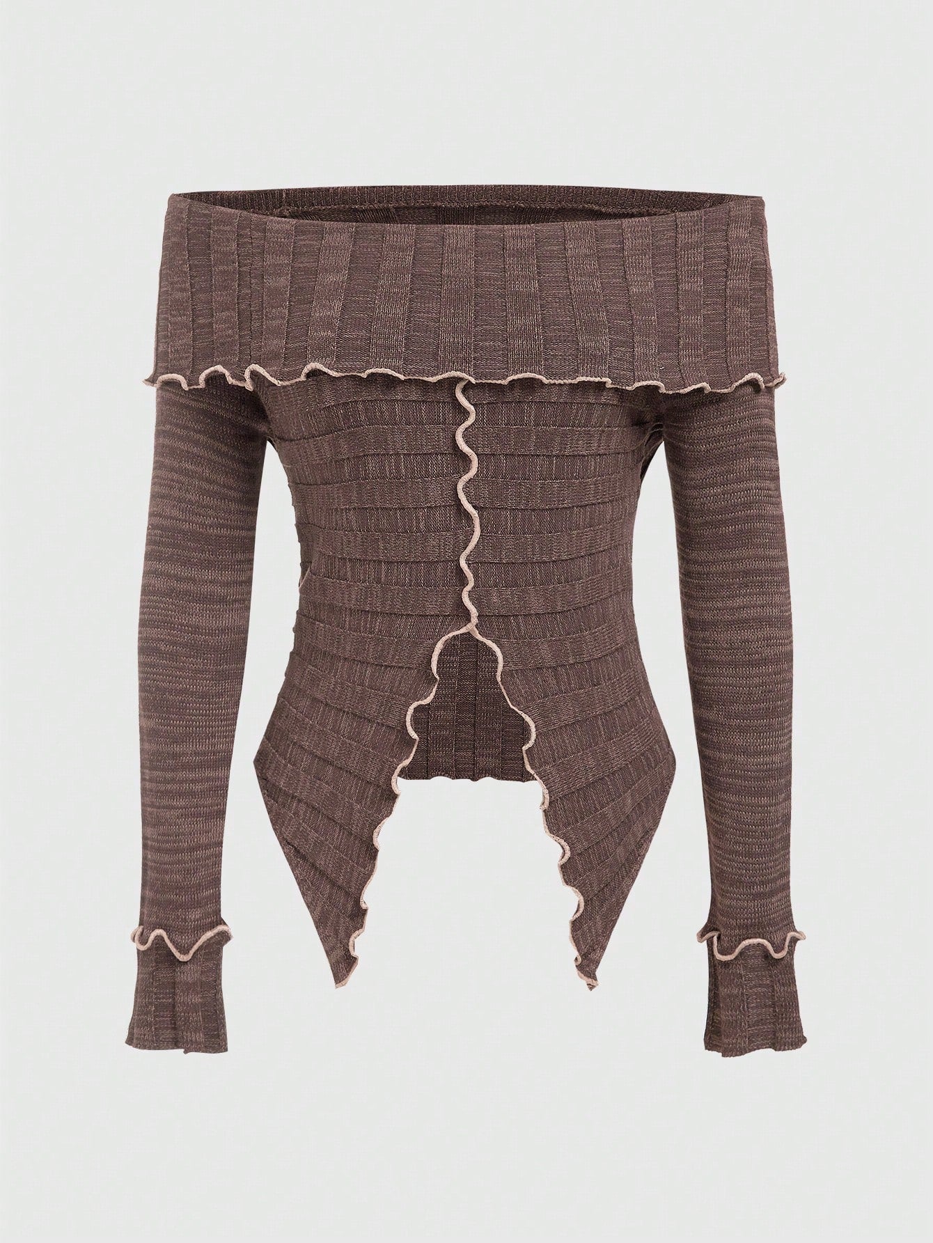 ROMWE Grunge Punk Suéter De Hombro Descubierto Con Dobladillo Asimétrico, División Y Borde Decorativo mujer