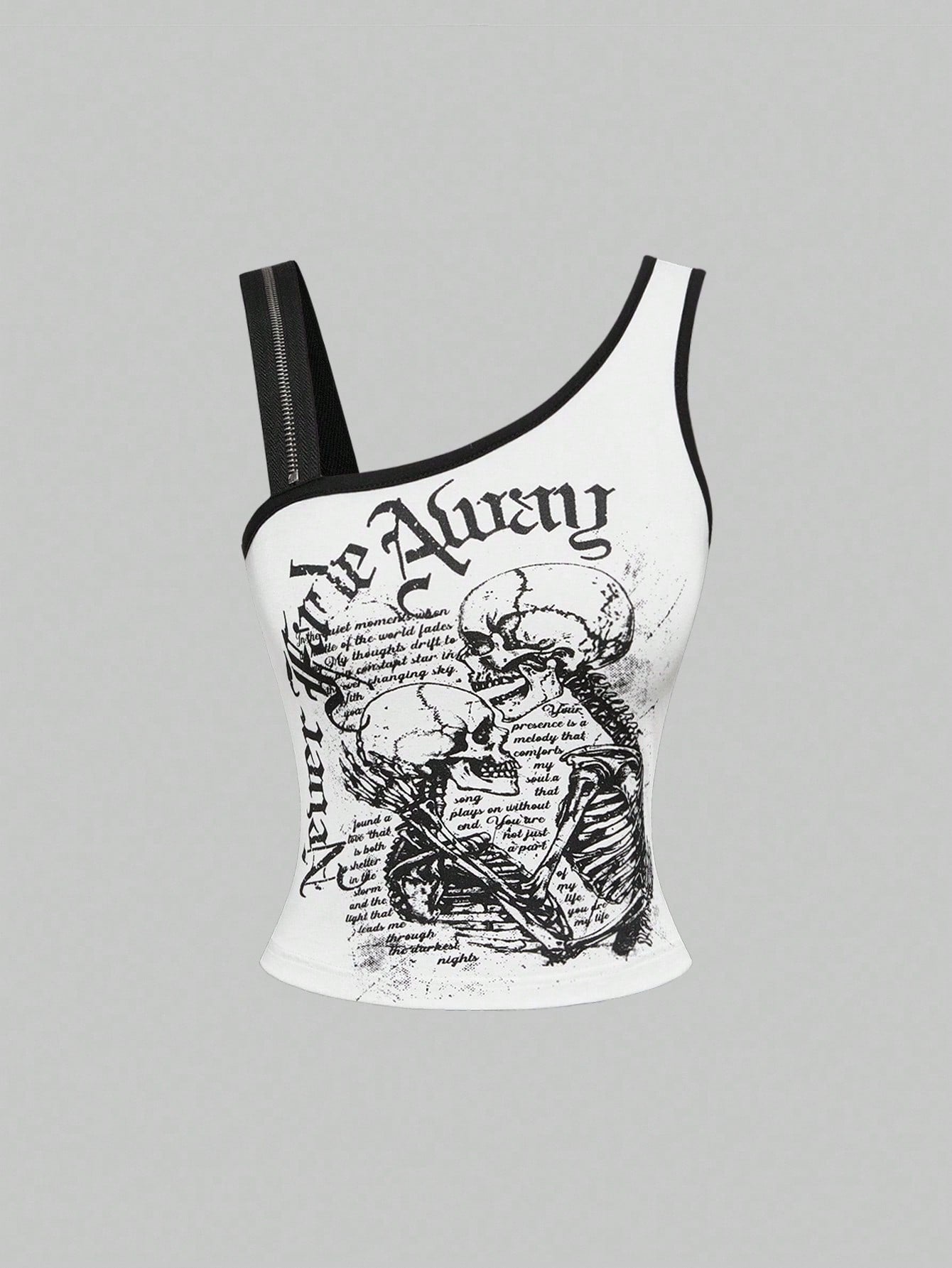 ROMWE Grunge Punk Top ajustado asimétrico de mujer con gráfico de esqueleto punk para festival de música