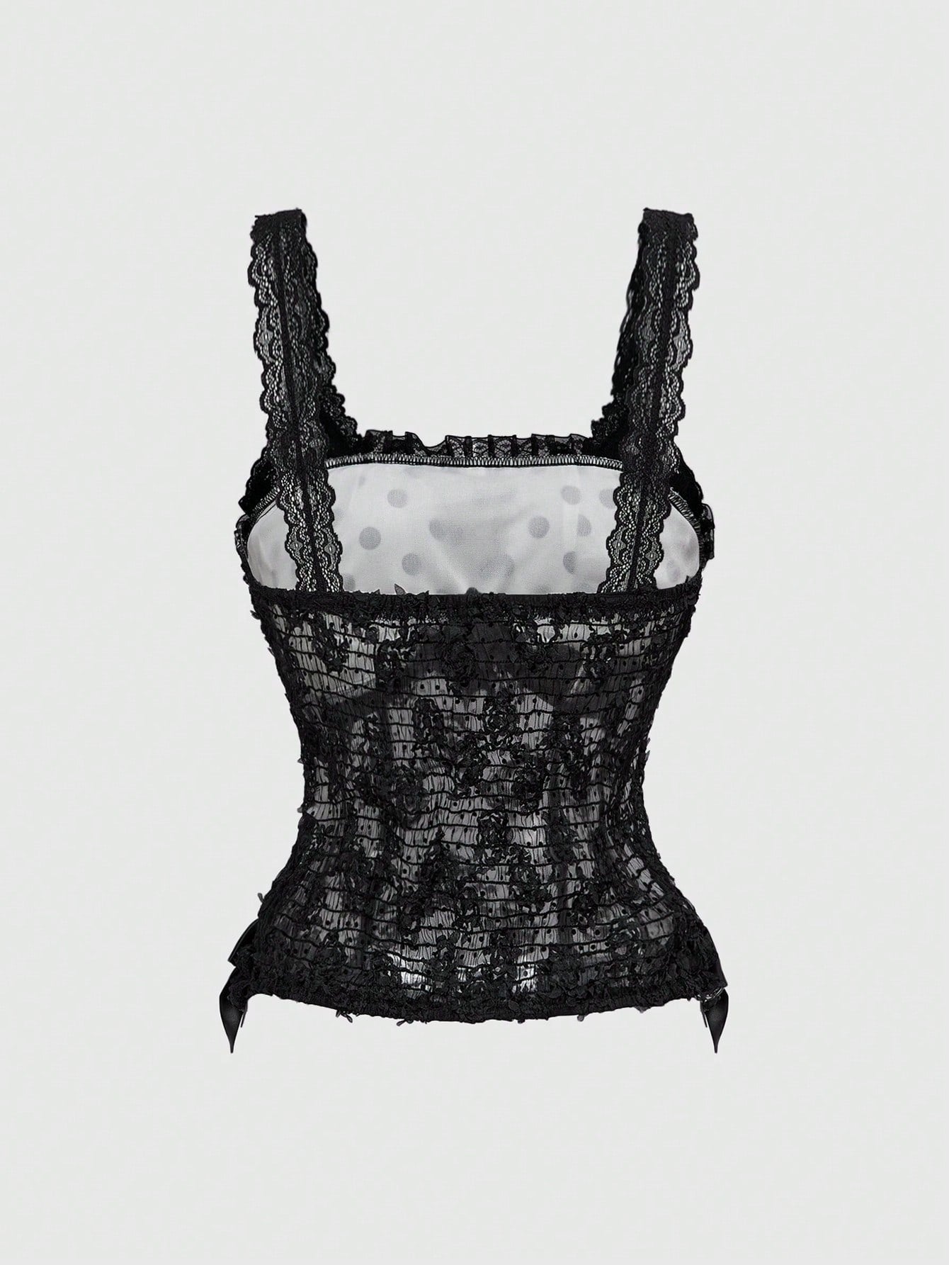 ROMWE Grunge Punk Top de tirantes de encaje y lunares a contraste estilo Y2K para el Día de San Valentín