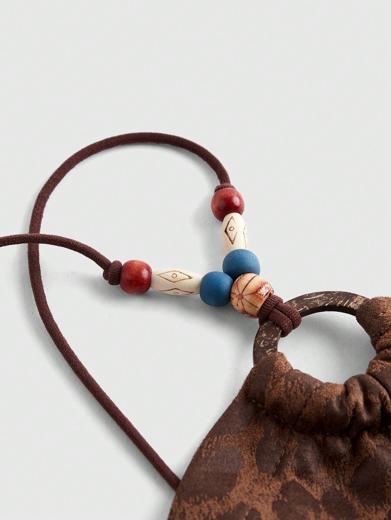 ROMWE Hippie Blusa de tirantes de estilo hippie con cuentas, de suave estampado de leopardo, en estilo vintage para el verano