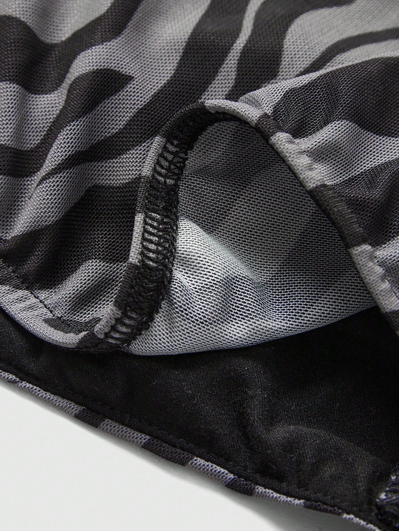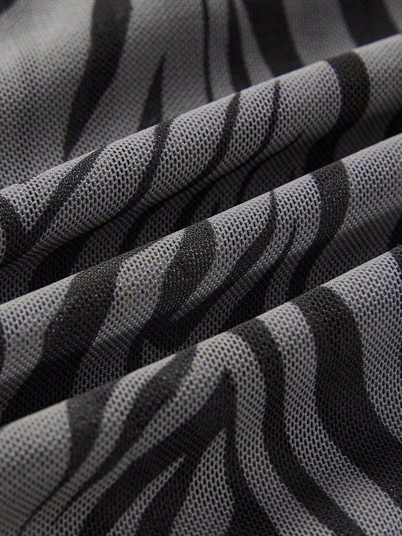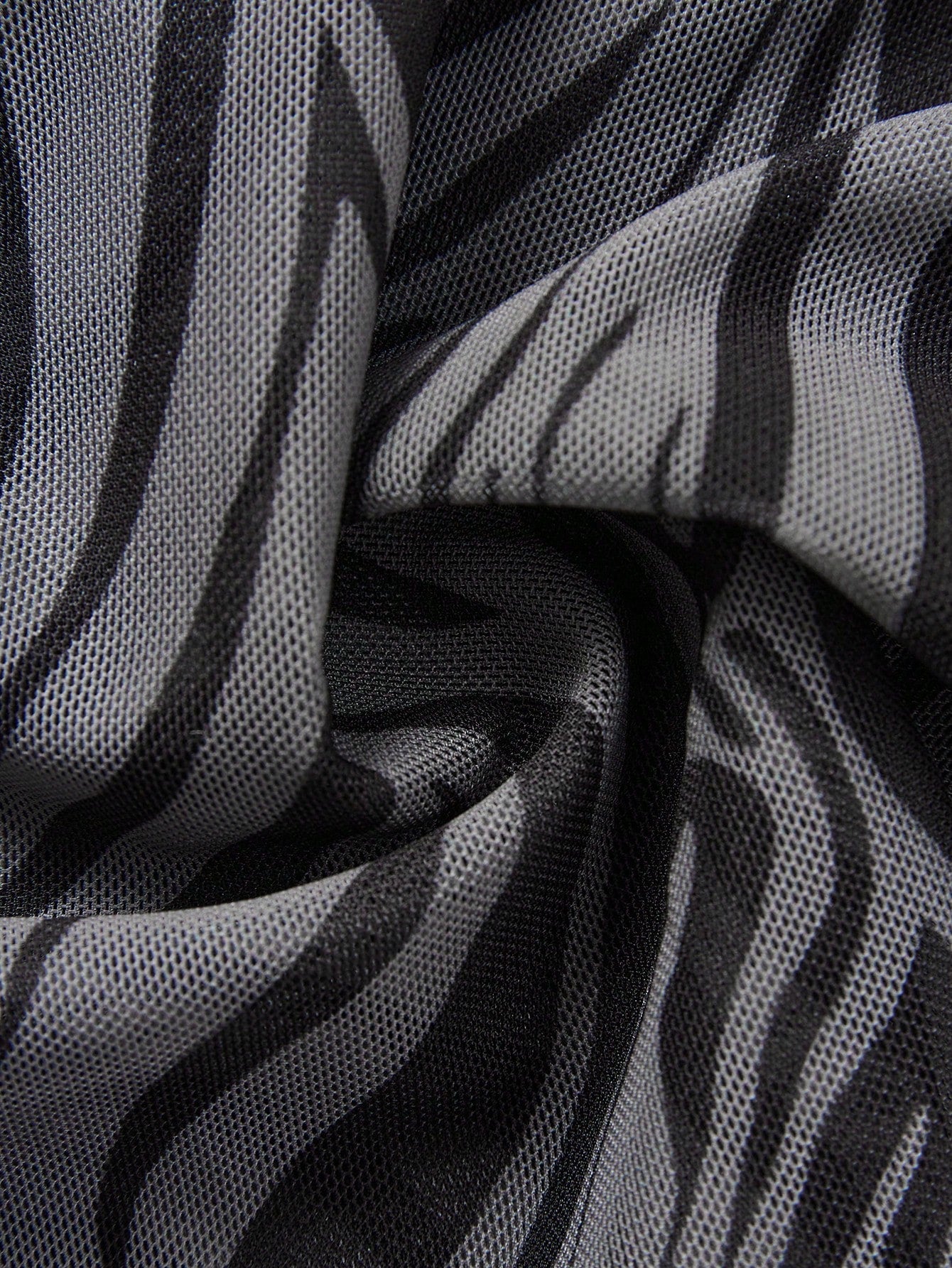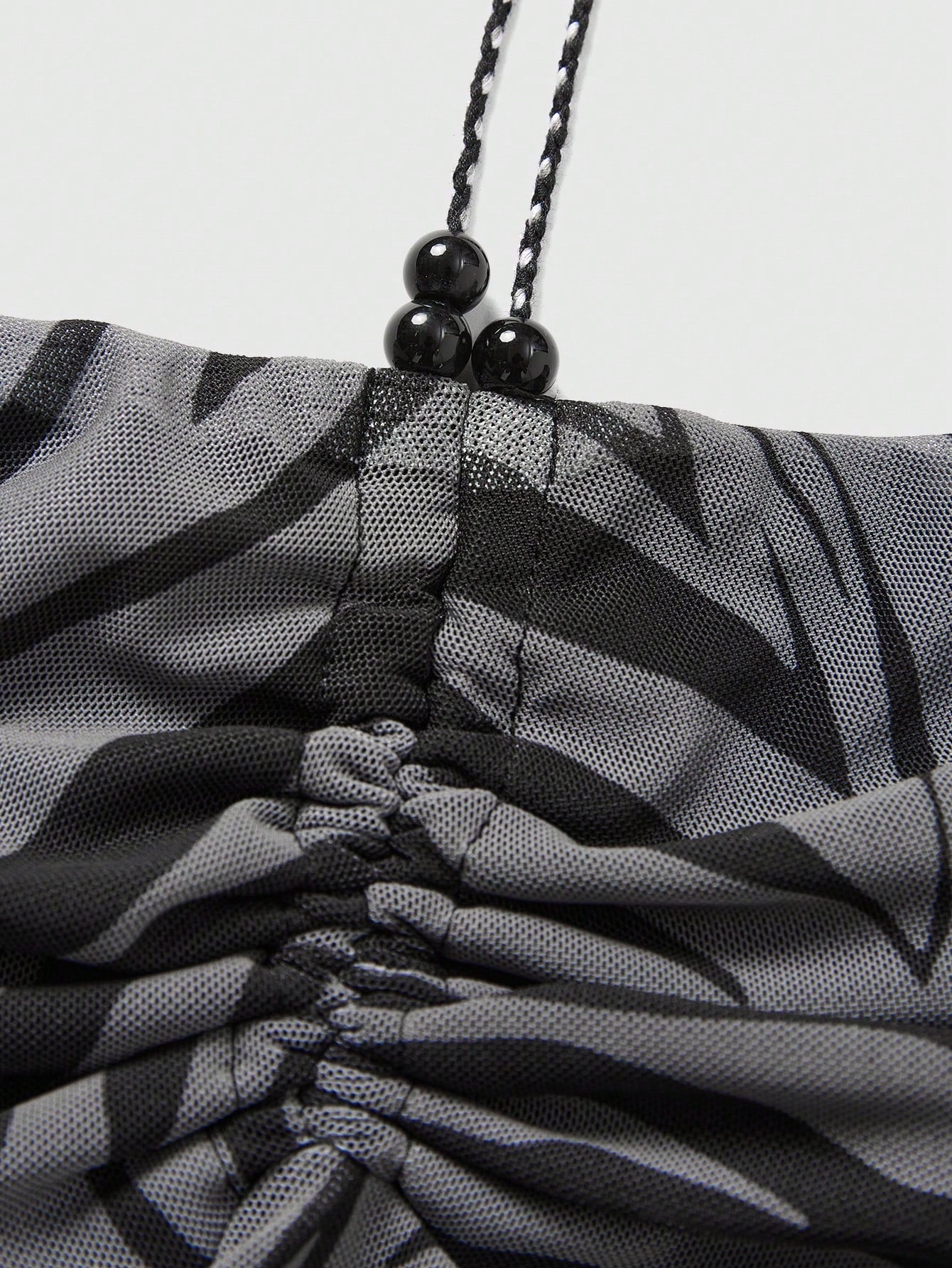 ROMWE Hippie Camisola con malla y estampado de leopardo y cebra para mujer, estilo bohemio y sexy, con lazo de cinta adornado con cuentas y nudo de lazo