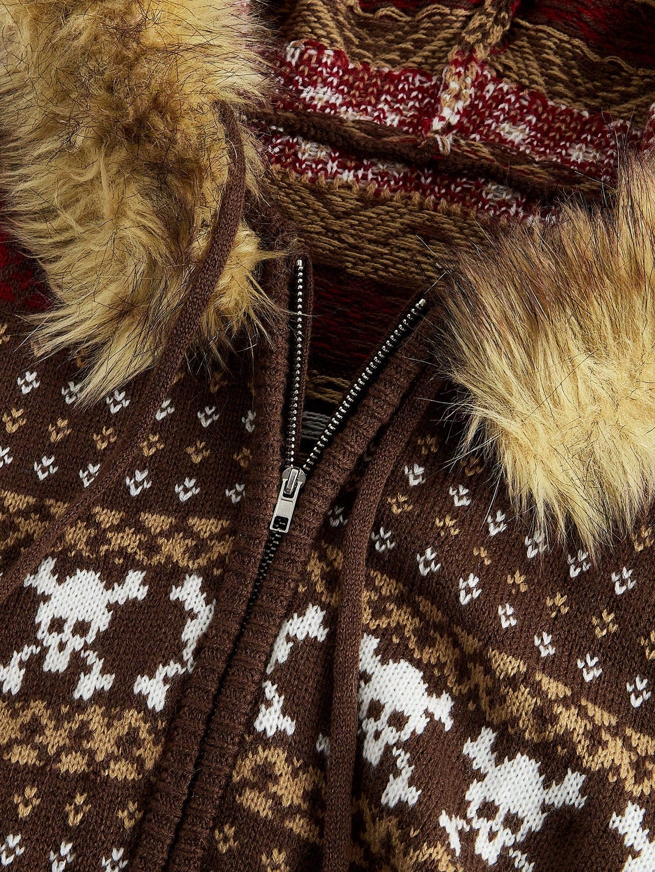ROMWE Hippie Cárdigan con capucha vintage Y2K Gyaru, ajustado, con dobladillo deshilachado y estampado fairisle para mujer