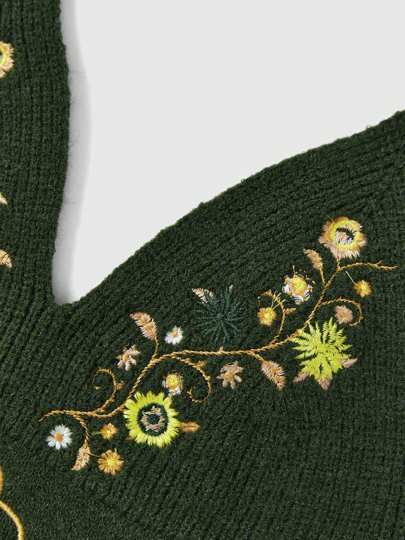 ROMWE Hippie Top de punto halter sin espalda con bordado floral
