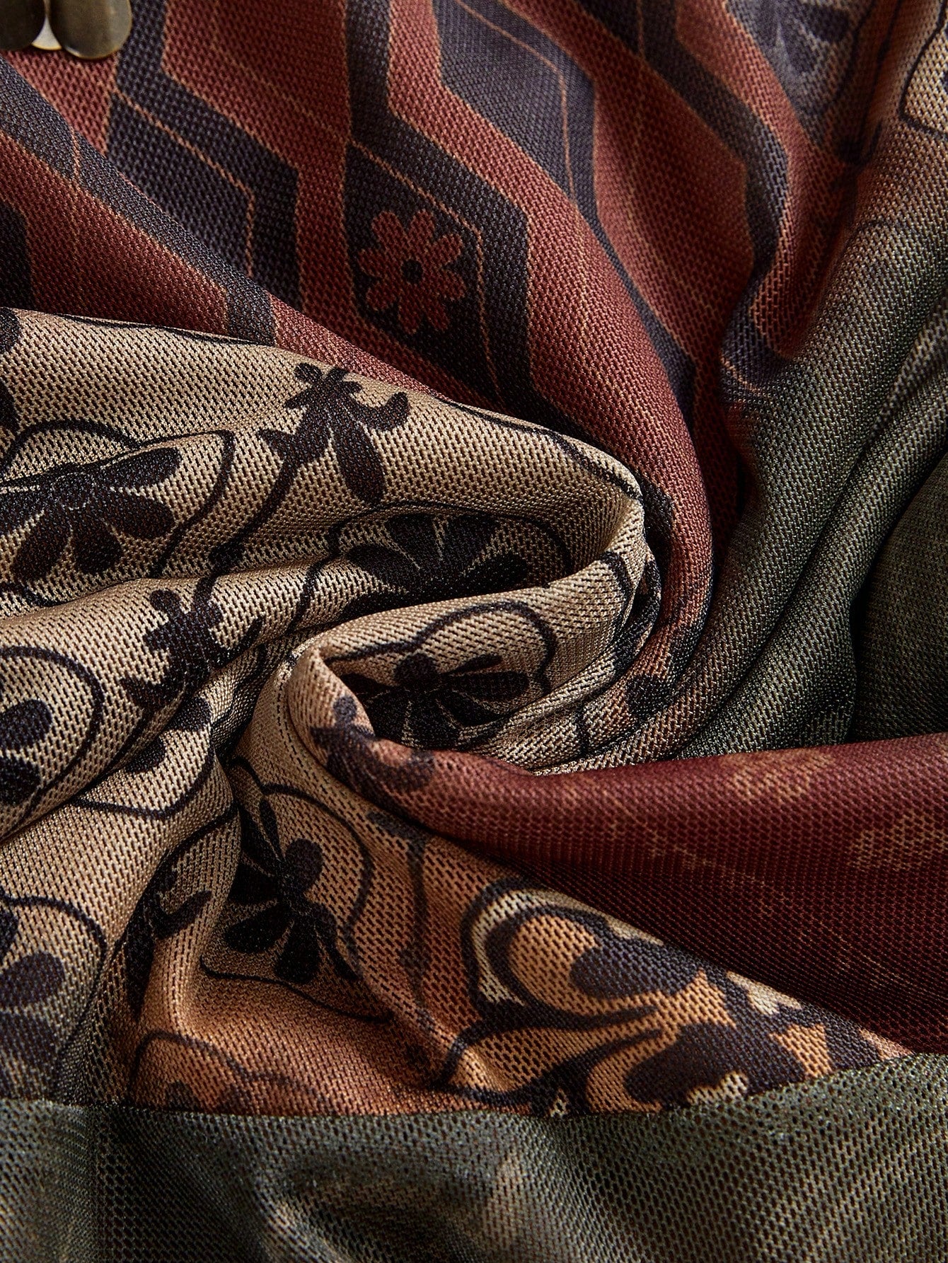 ROMWE Hippie Vestido mini con estampado de paisley con volantes, encaje y cinta estilo vintage hippie retro para mujeres