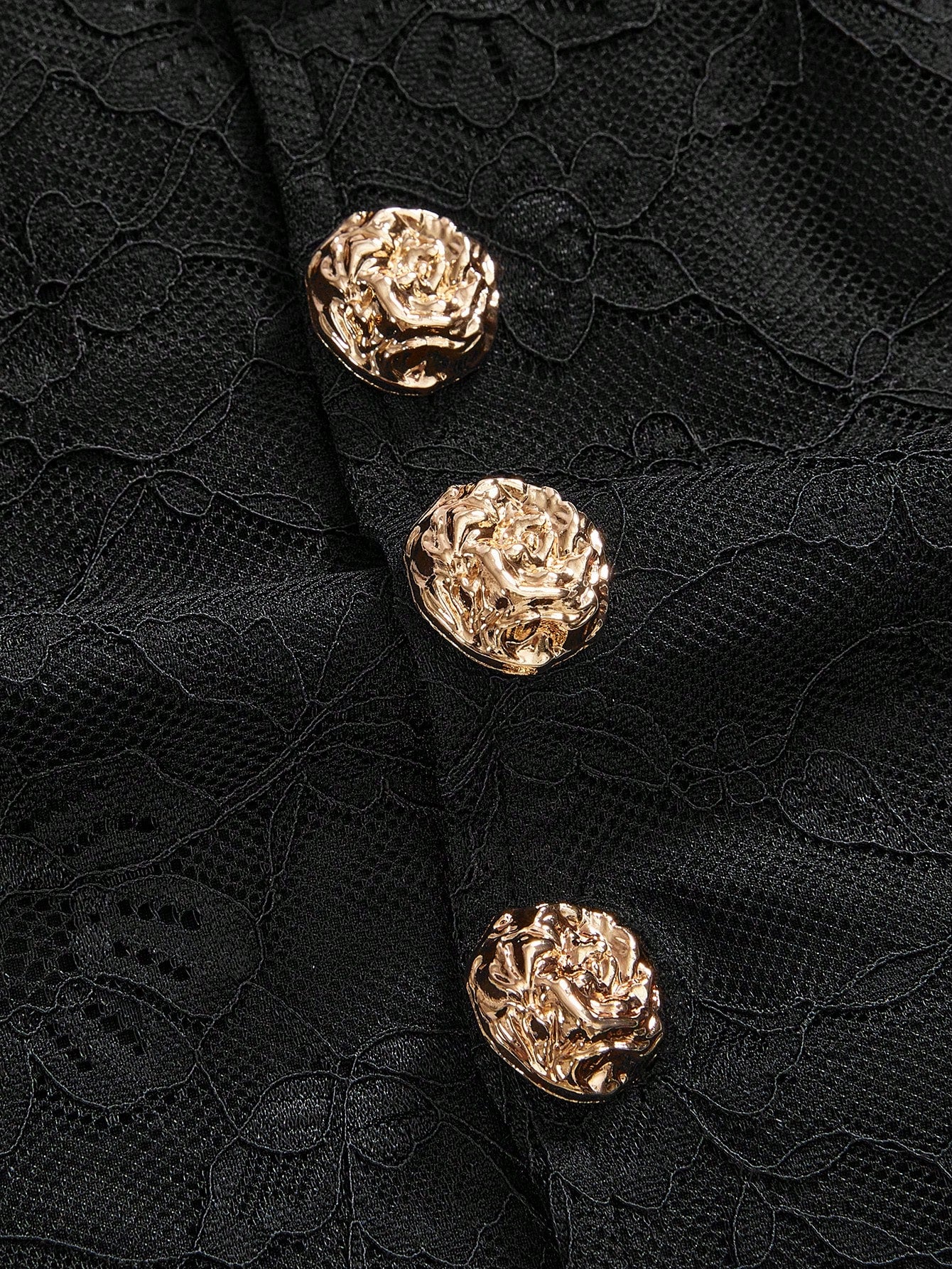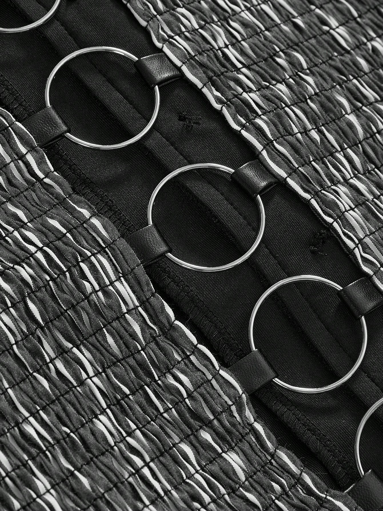 ROMWE J-Fashion Blazer a rayas con estilo retro Y2K Harajuku, top sin espalda con decoración metálica y halter de encaje en contraste para mujeres