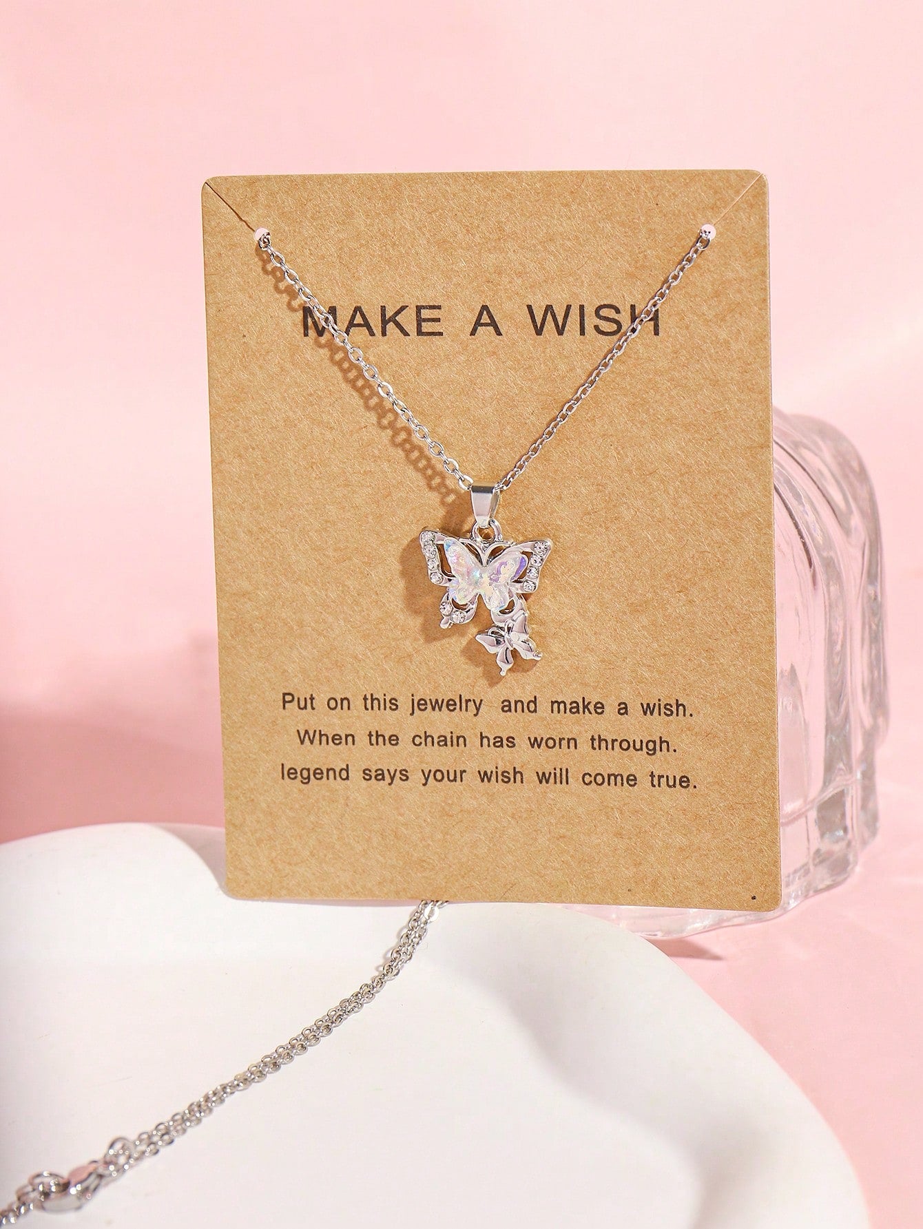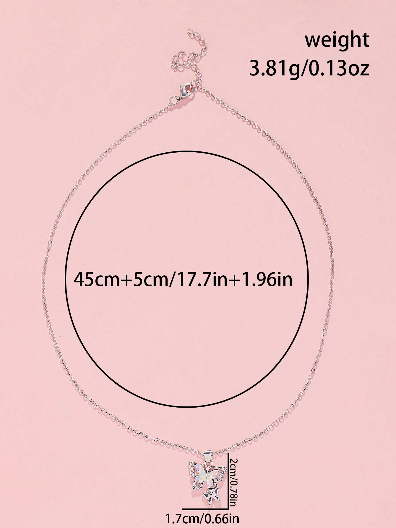 ROMWE Kawaii 1 Pieza Dulce Y Fresco Estilo De Pareja Cuento De Hadas Temático Del Bosque Con Múltiples Colores De Decoración De Pedrería Y Colgante De Mariposa