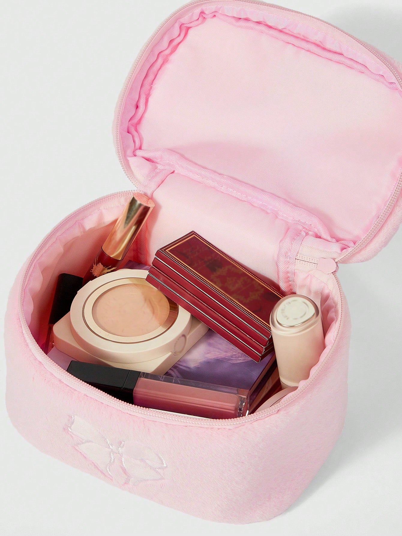ROMWE Kawaii Bolsa cosmética de mano grande de peluche con estampado de lazos de dibujos animados 401422