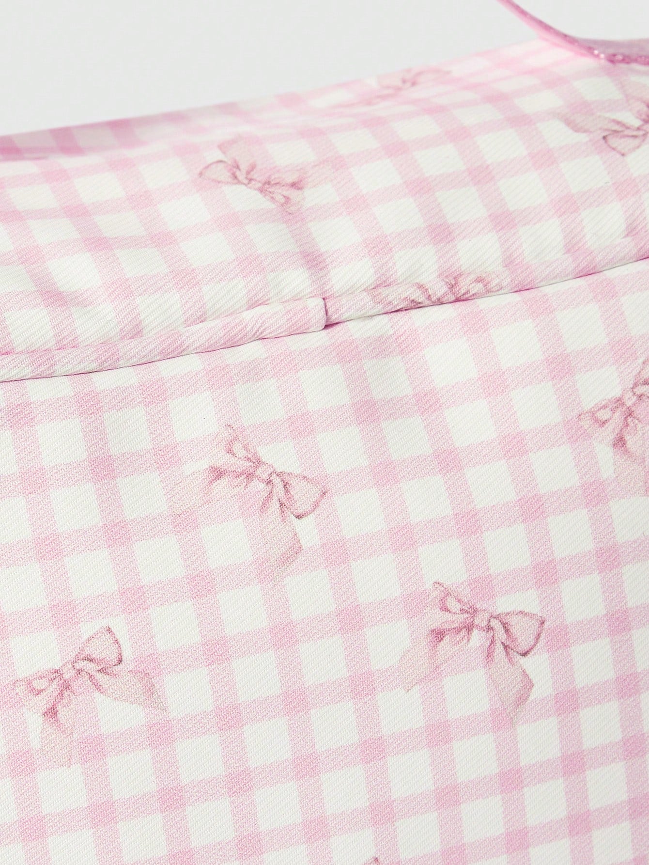 ROMWE Kawaii Bolsa de cosméticos portátil de gran capacidad con lazo rosa de dibujos animados 918877