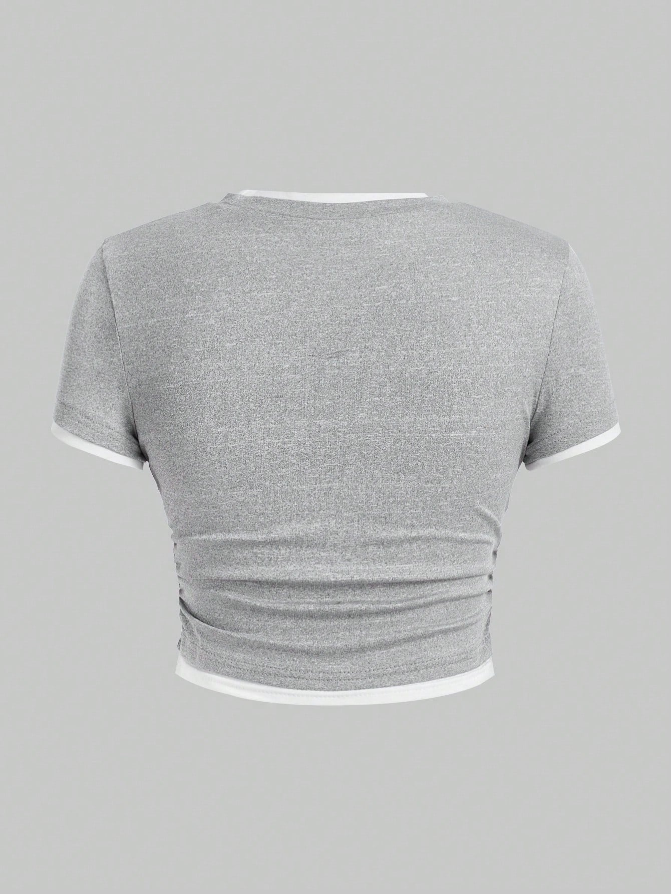 ROMWE Kawaii Camiseta 2 en 1 entallada para mujer con lindo lazo decorativo y cinta, fácil de combinar