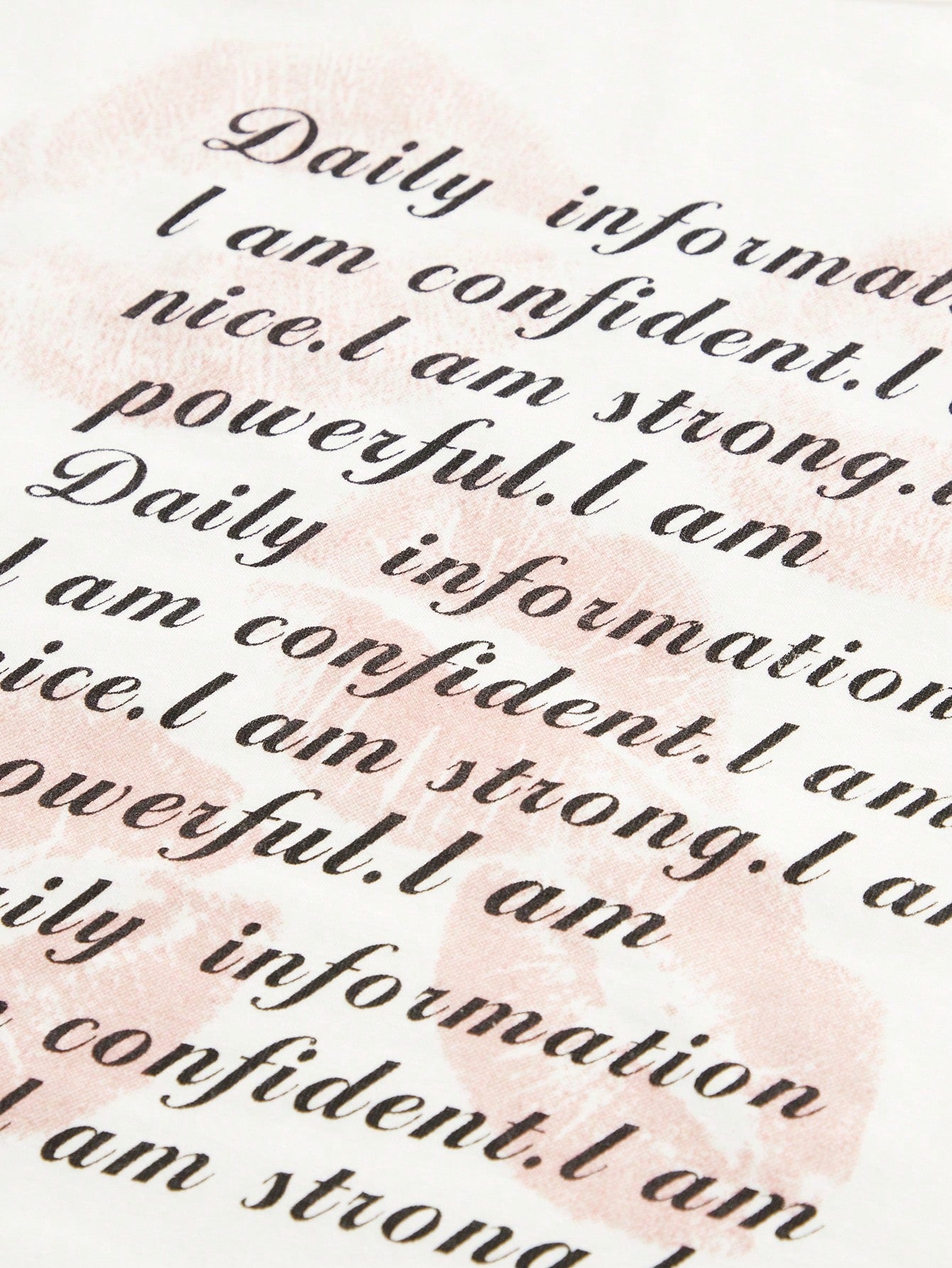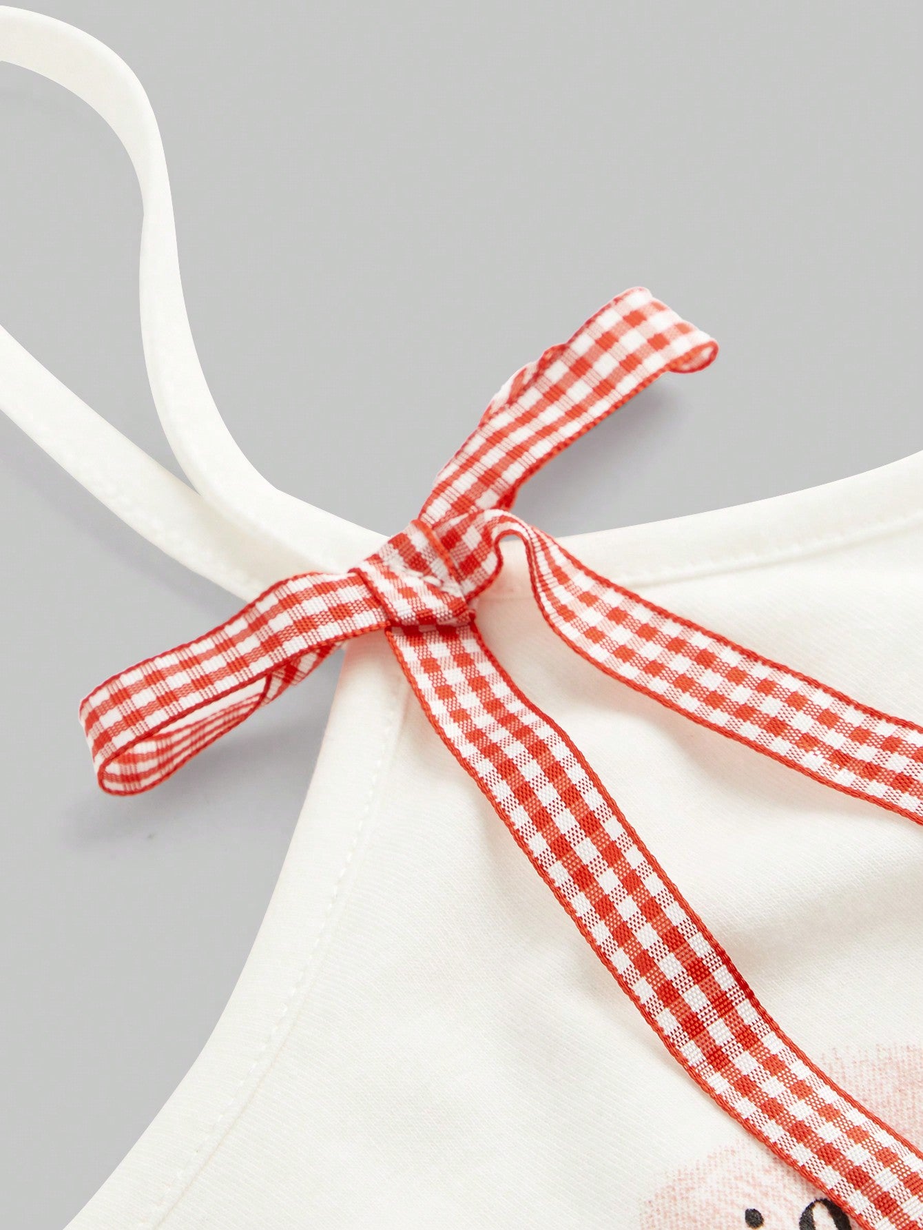 ROMWE Kawaii Camiseta De Tirantes Para Mujer Estampada Con Eslogan Y Decoración De Lazo