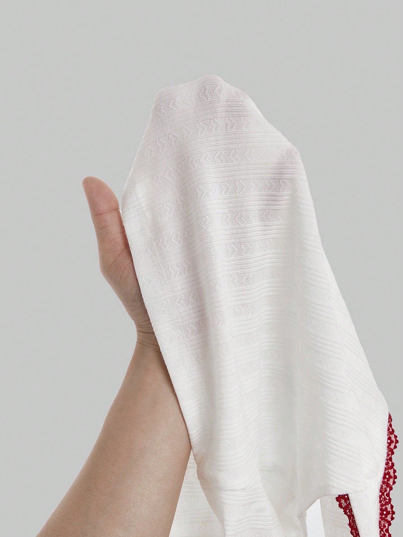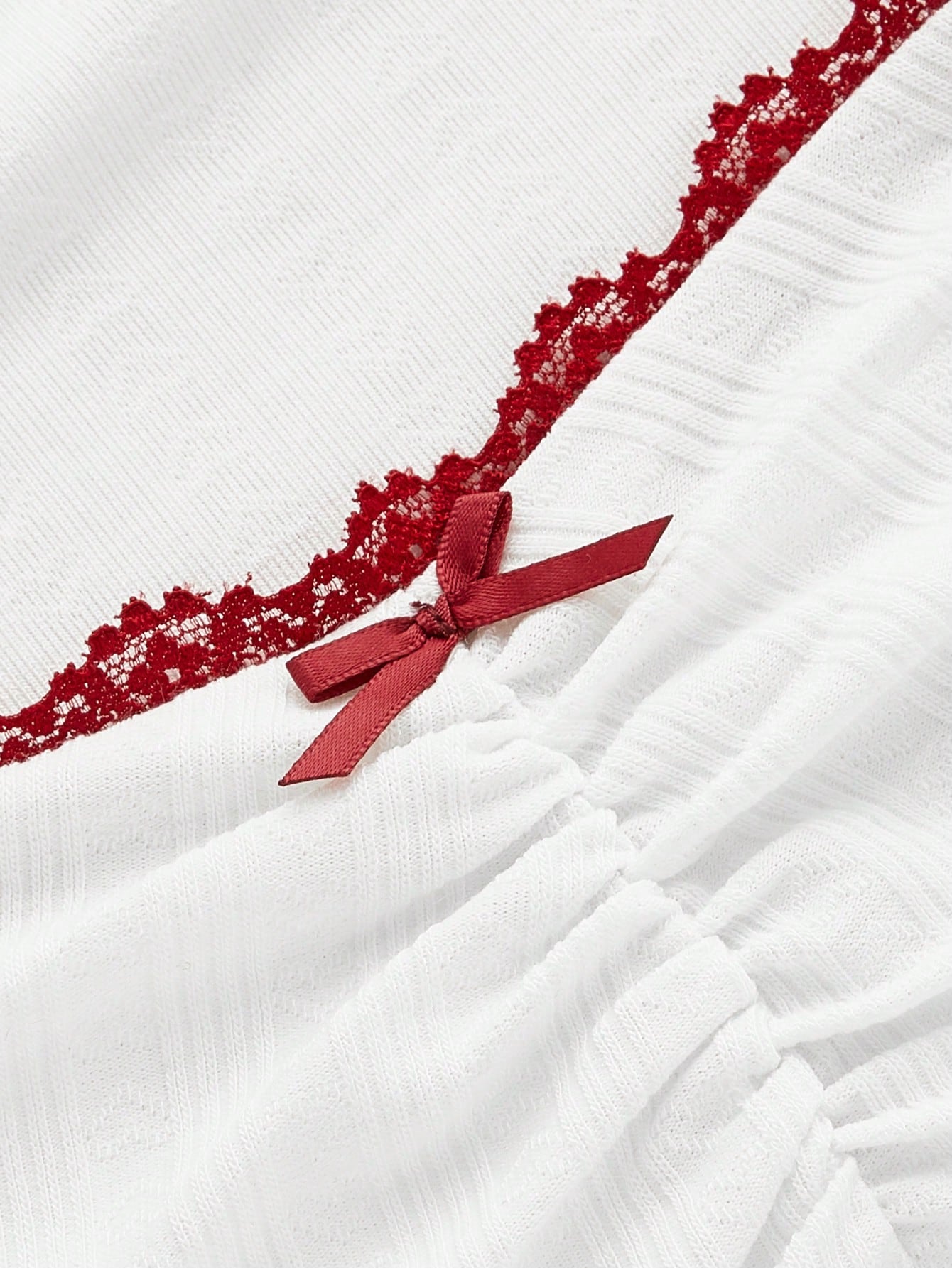 ROMWE Kawaii Camiseta elástica para mujer de ajuste ceñido con forma de corazón, acabado con encaje y lazo, para ocio y escuela