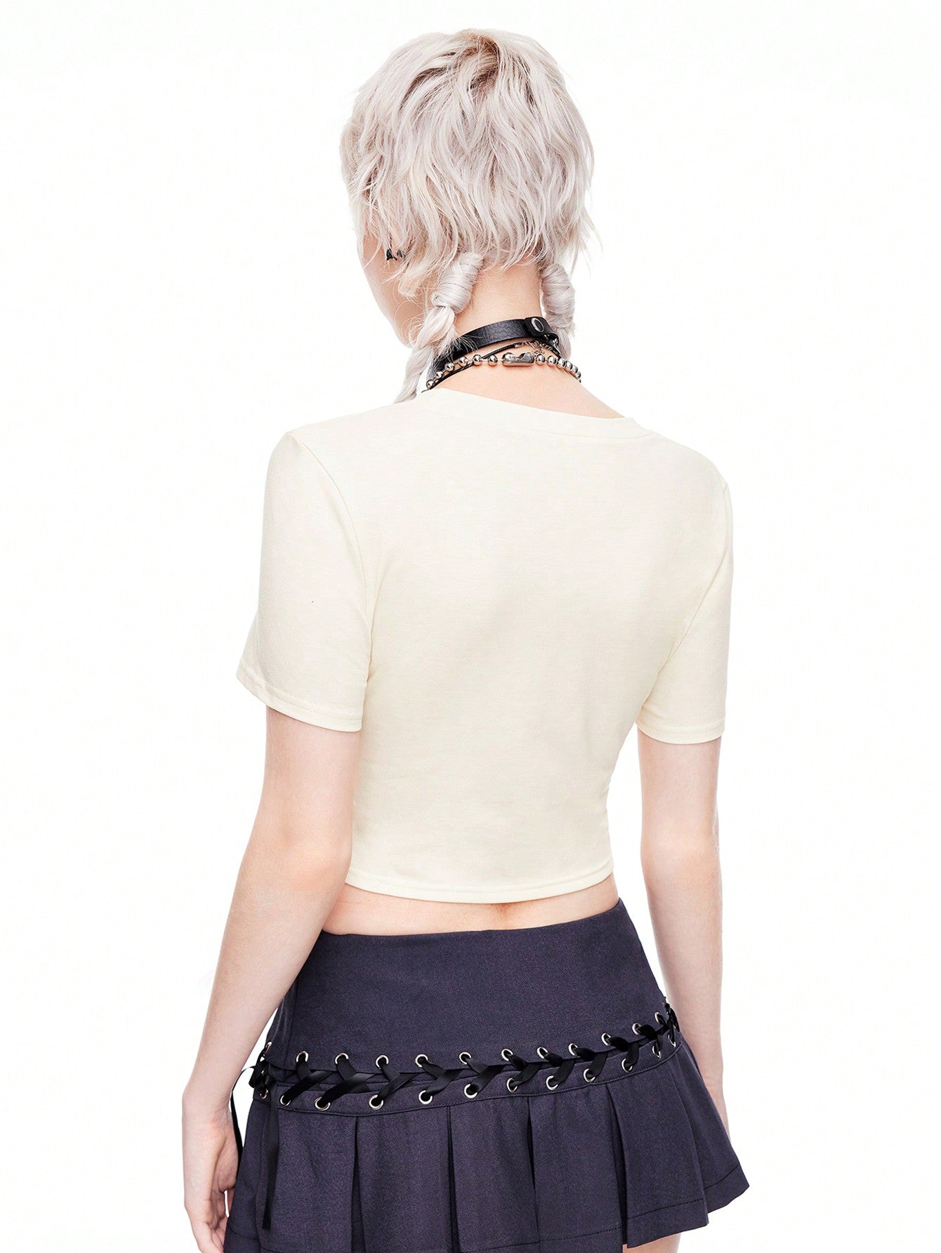 ROMWE Kawaii Camiseta recortada bonita con estampado de gato negro espeluznante para mujer