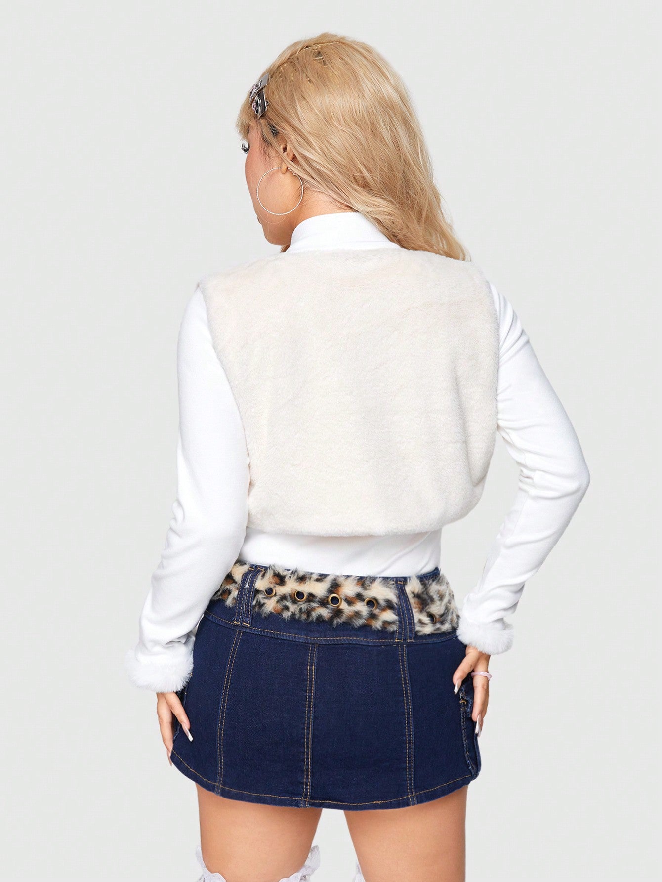 ROMWE Kawaii Chaqueta De Franela Corta Para Mujer Con Hebilla De Cuerno