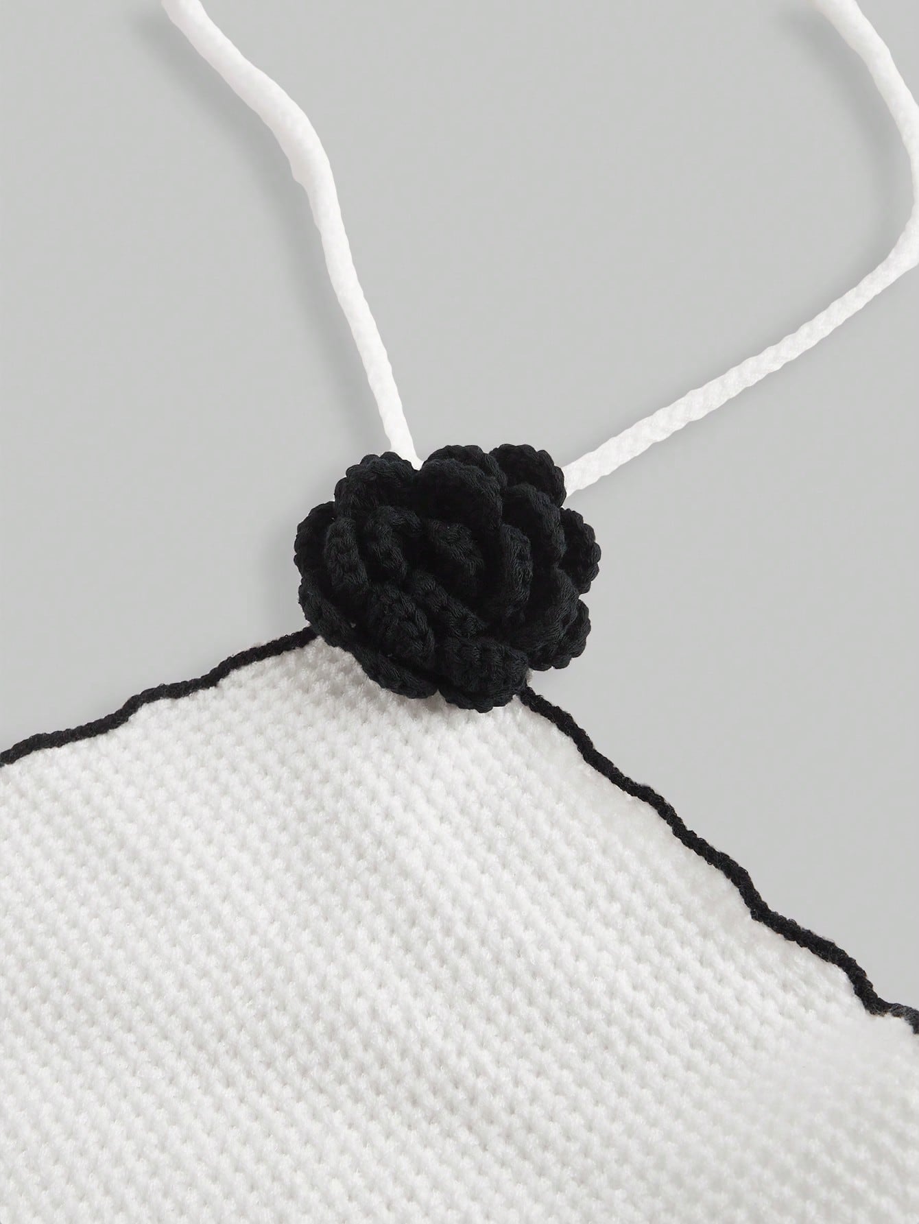 ROMWE Kawaii Parte superior de punto sin mangas con cuello halter y decoración floral para mujer