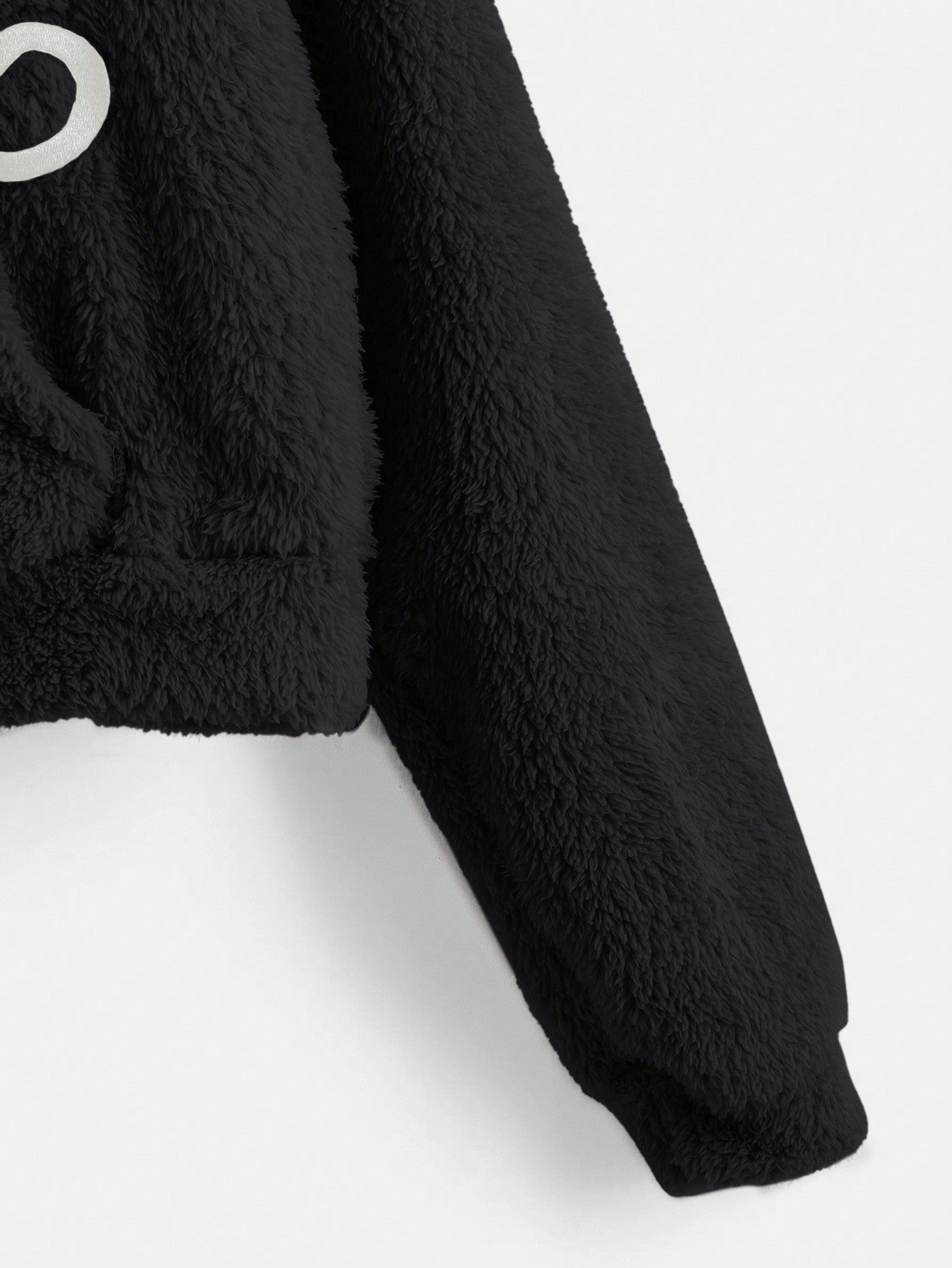 ROMWE Kawaii Sudadera casual con capucha con bordado de dibujos animados, forrada térmicamente, de manga larga para otoño/invierno