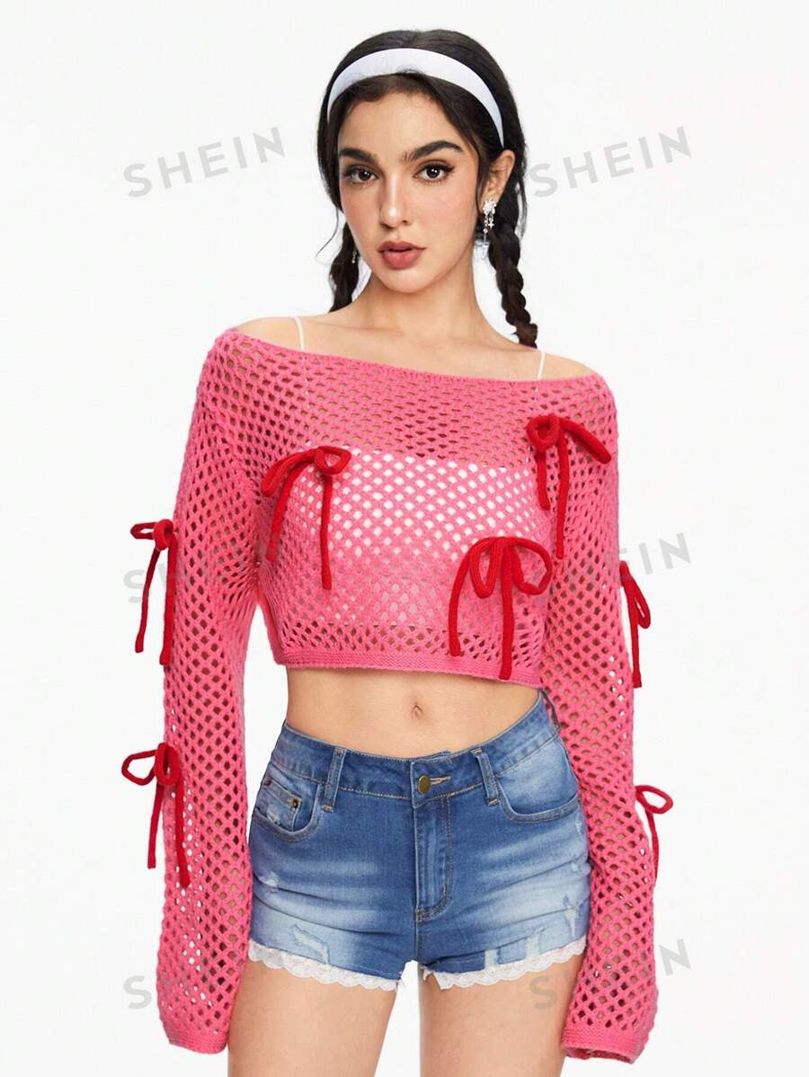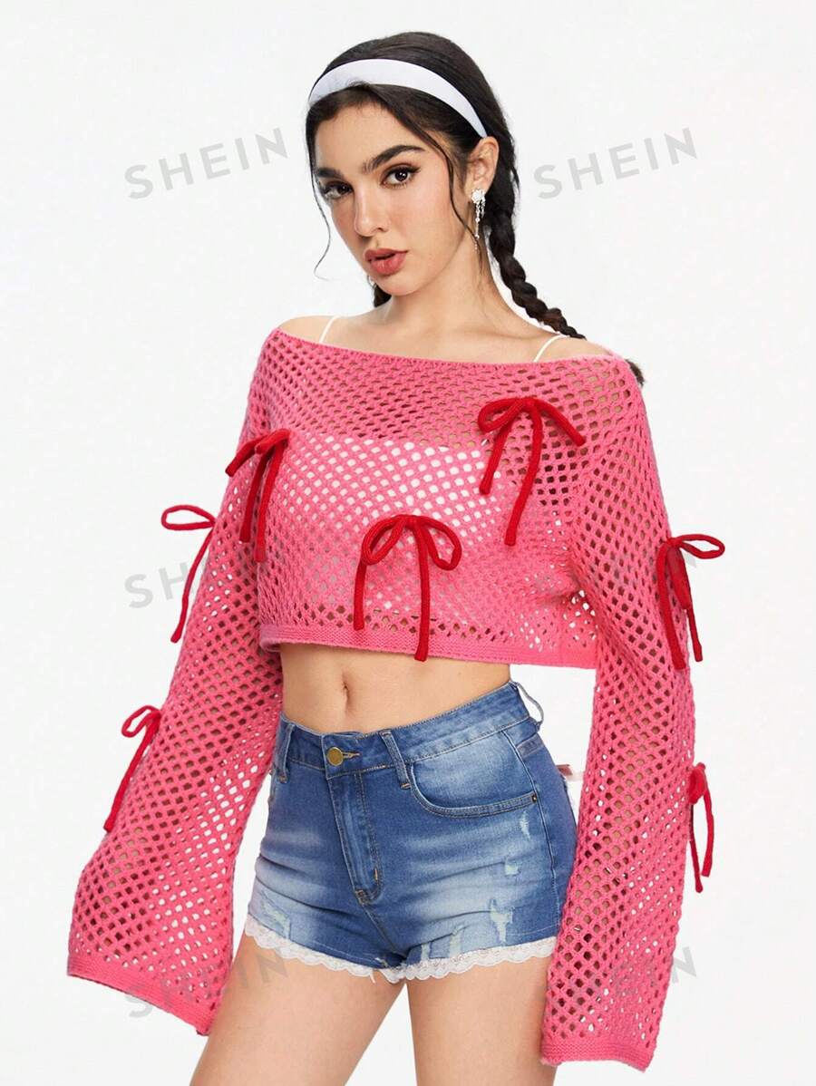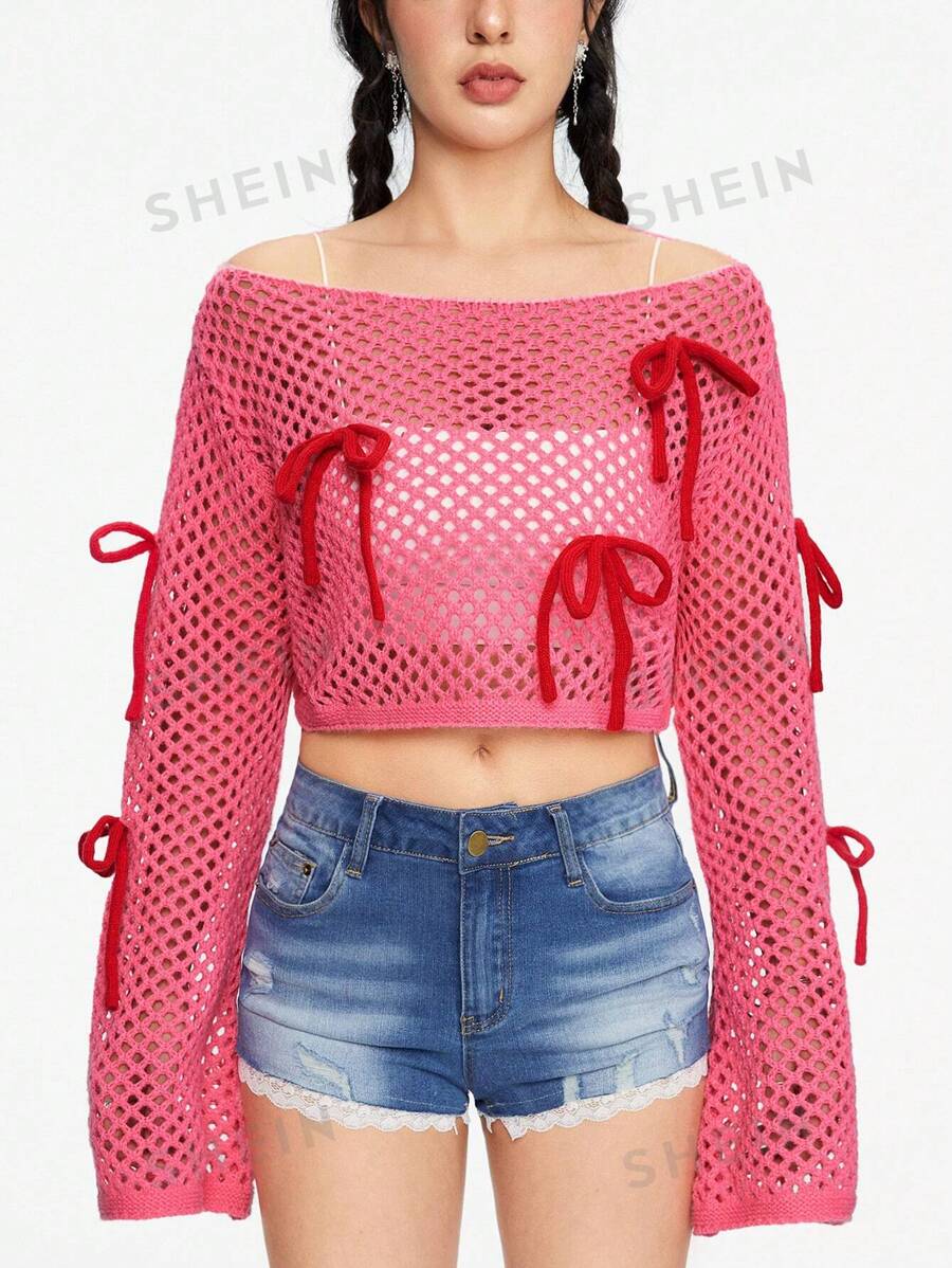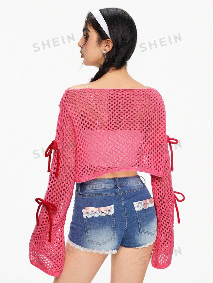 ROMWE Kawaii Suéter de mariposa hueca con decoración para mujer, sencillo y elegante, para uso diario