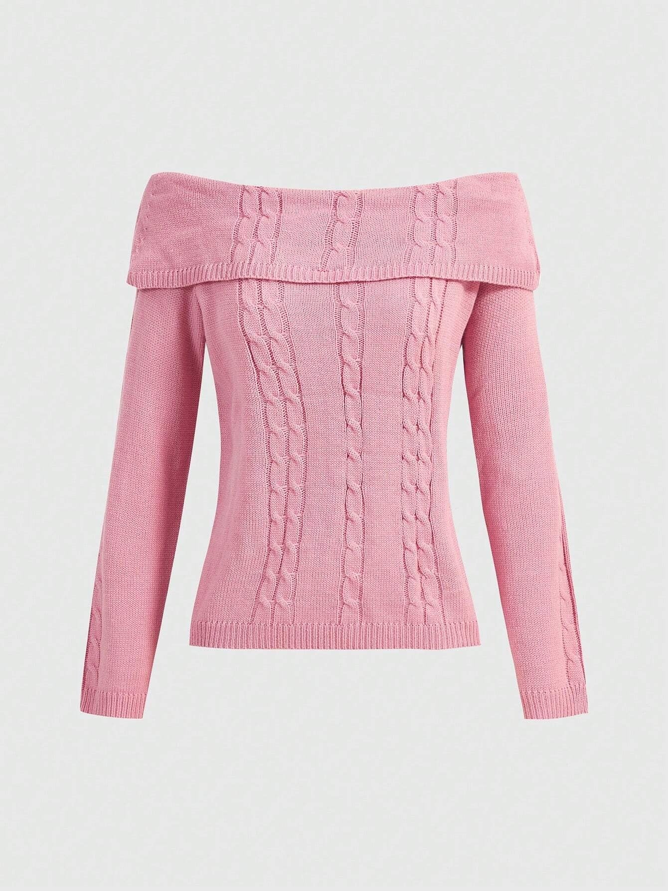 ROMWE Kawaii Suéter de punto de cable rosa con hombros descubiertos y unicolor para ocasiones informales Mujer