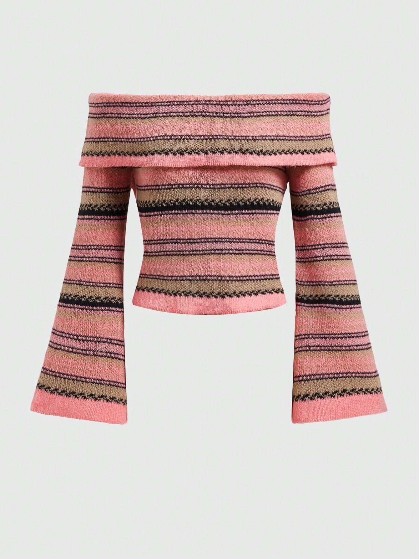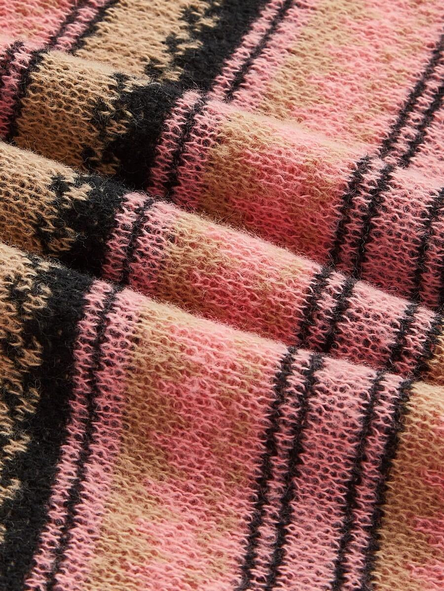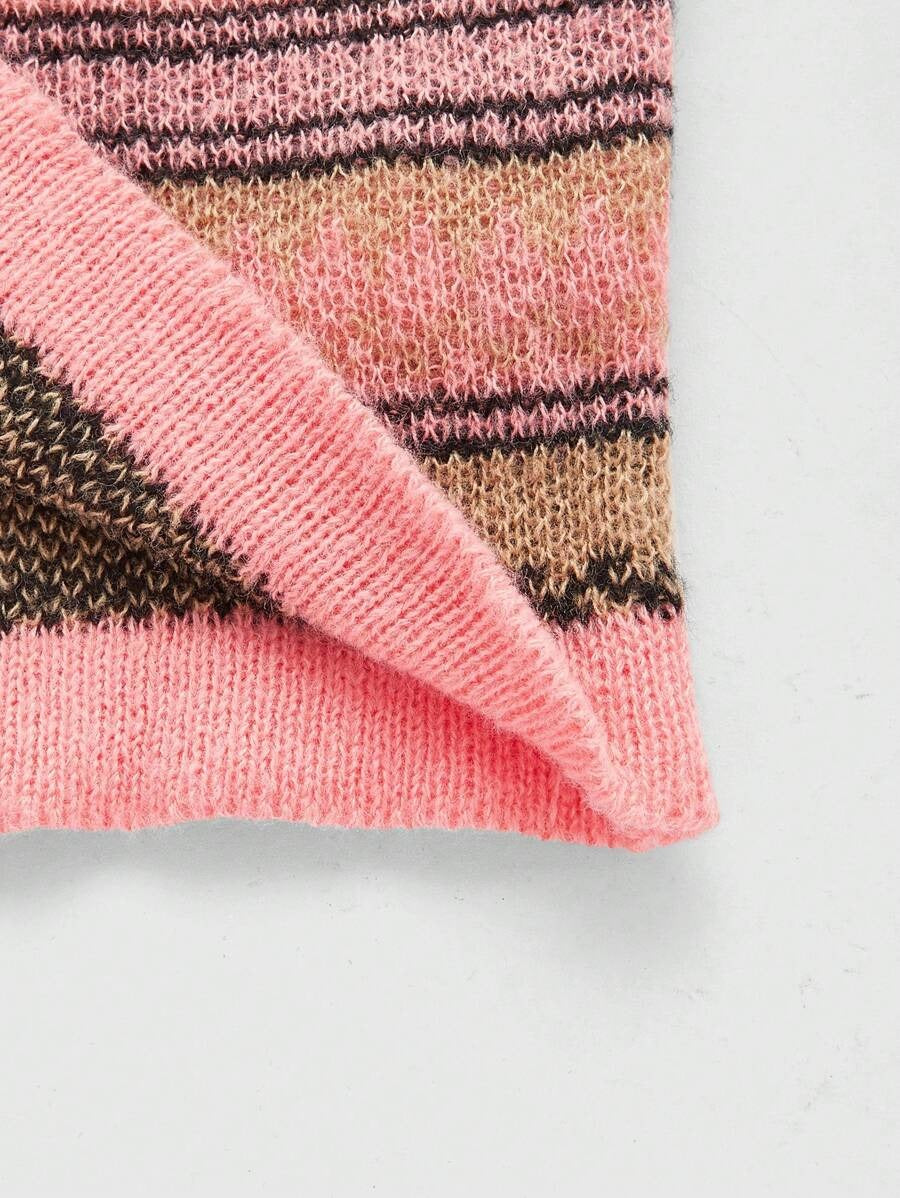 ROMWE Kawaii Sweater Rosa De Rayas Para Mujer Con Hombros Descubiertos