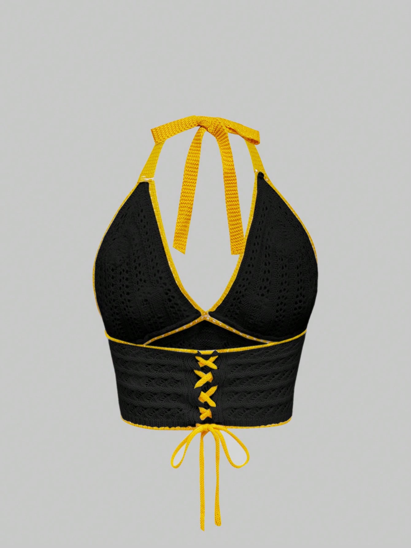 ROMWE Kawaii Top de punto sin mangas con contraste de bordado floral para mujer