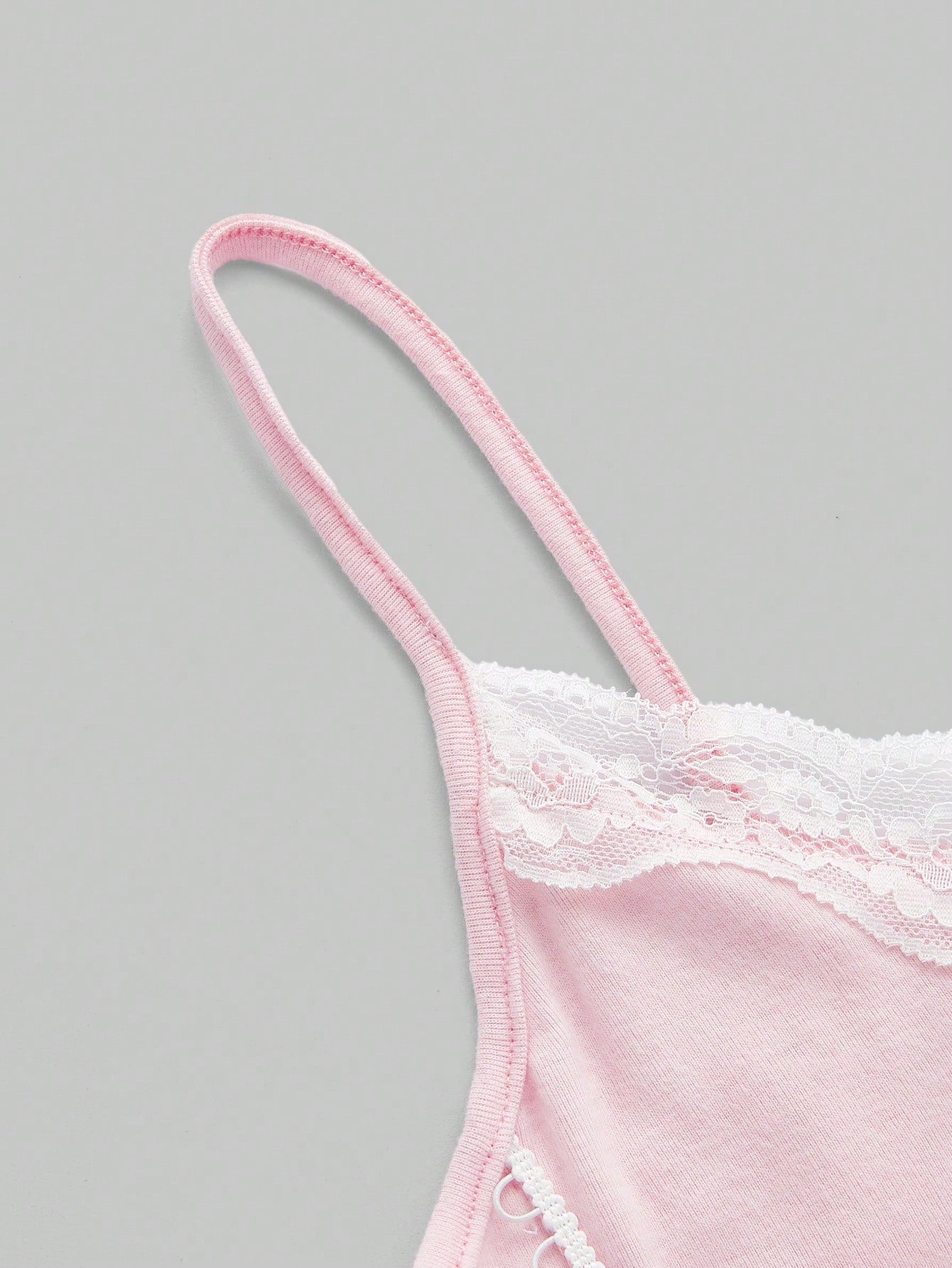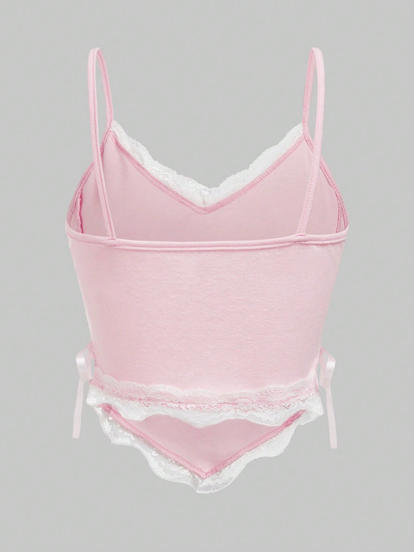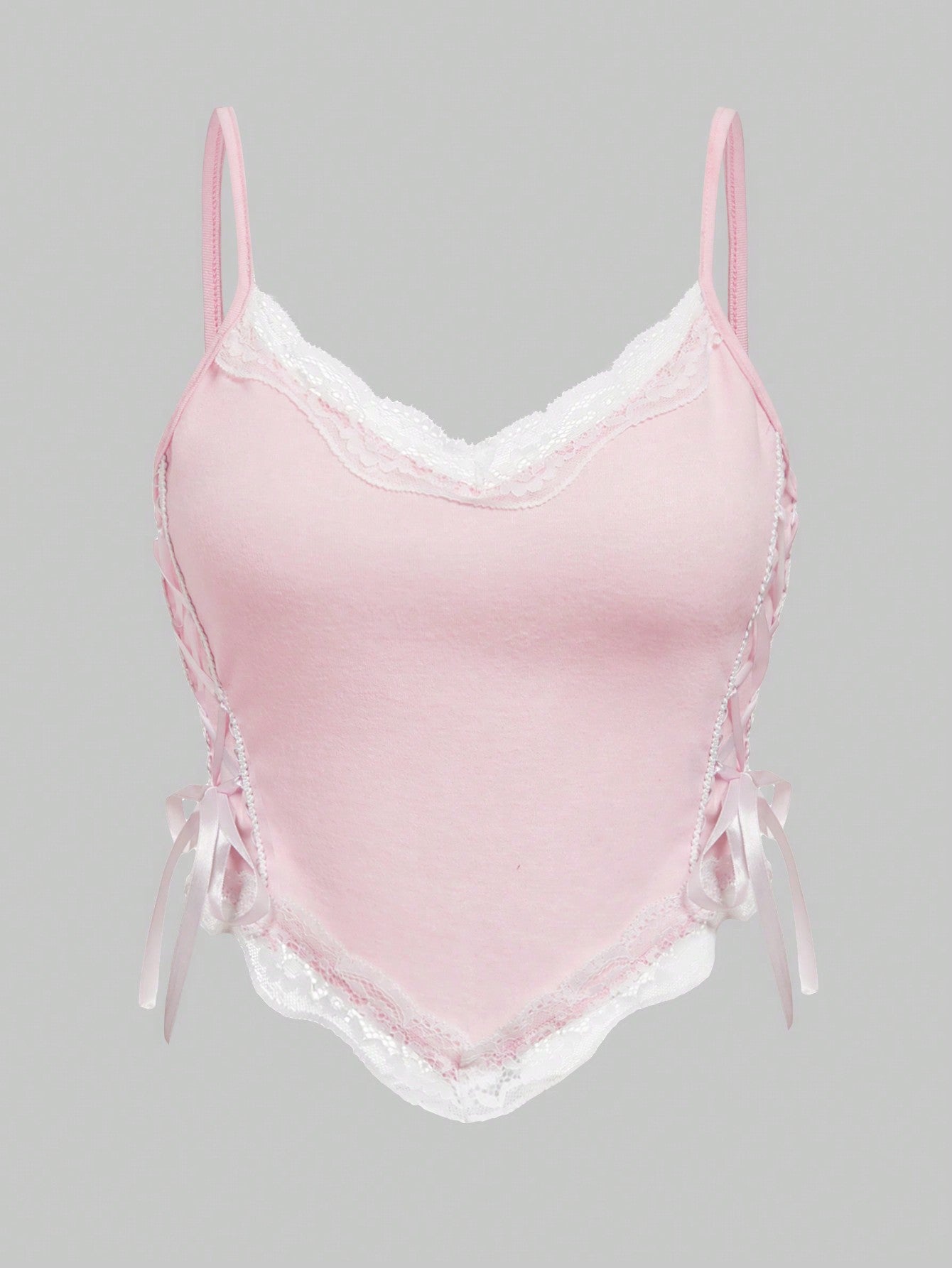 ROMWE Kawaii Top Sin Mangas Con Tirantes Cruzados Y Ribete De Encaje