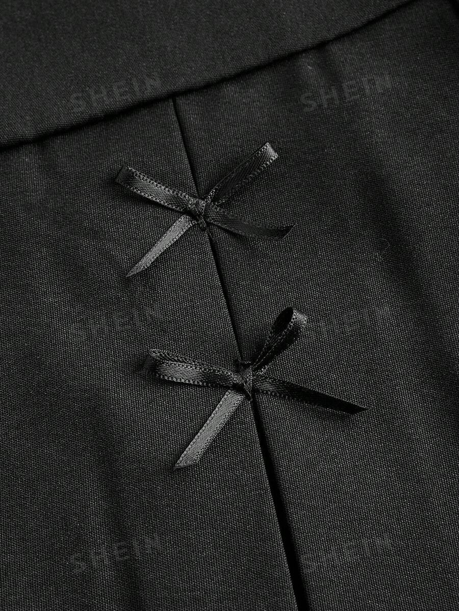 ROMWE Kawaii Vestido de cintura plisada con cinturón en unicolor de moda para mujer