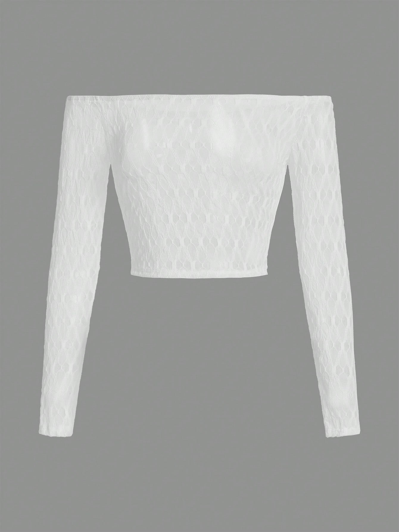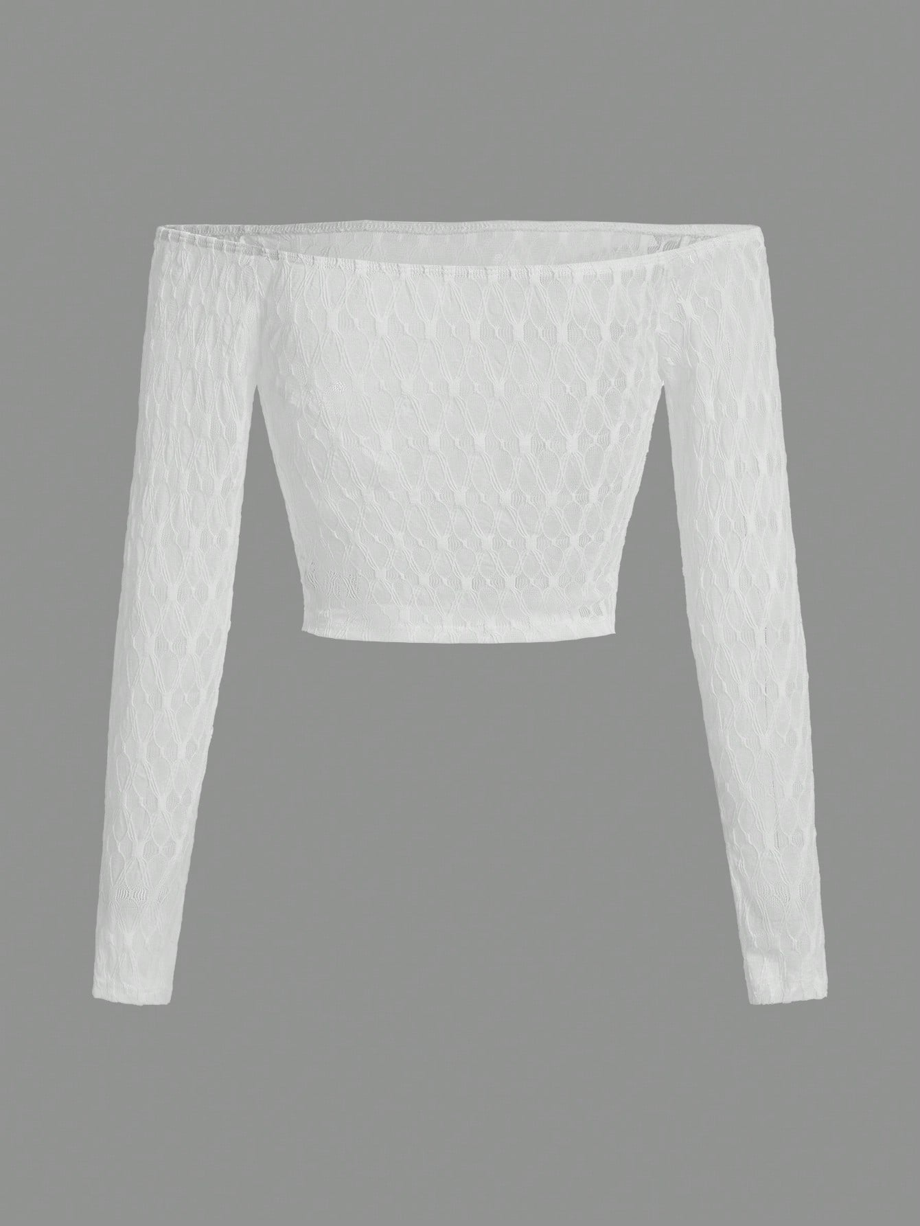 ROMWE PUNK Top De Manga Larga De Encaje Descubierto De Hombros Sólido Para Mujer
