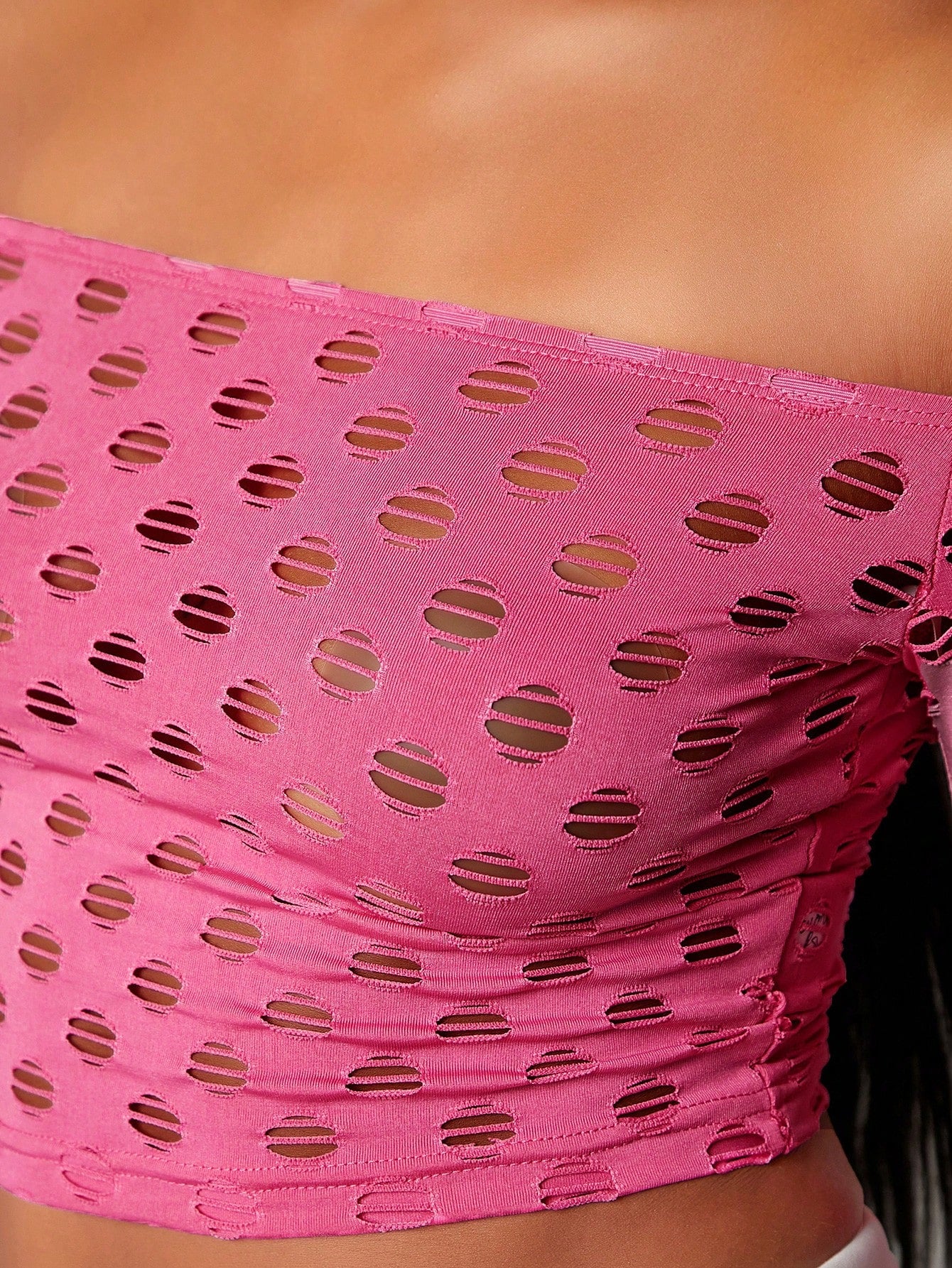 SHEIN BAE Camiseta crop de hombros descubiertos con abertura