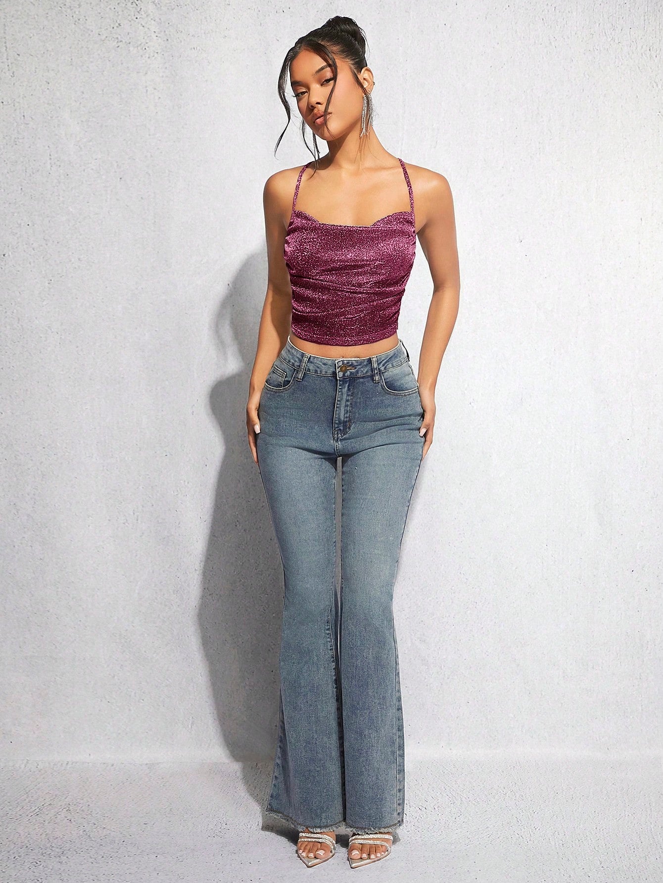 SHEIN BAE Top De Brillo De Cuello Drapeado Para Mujer