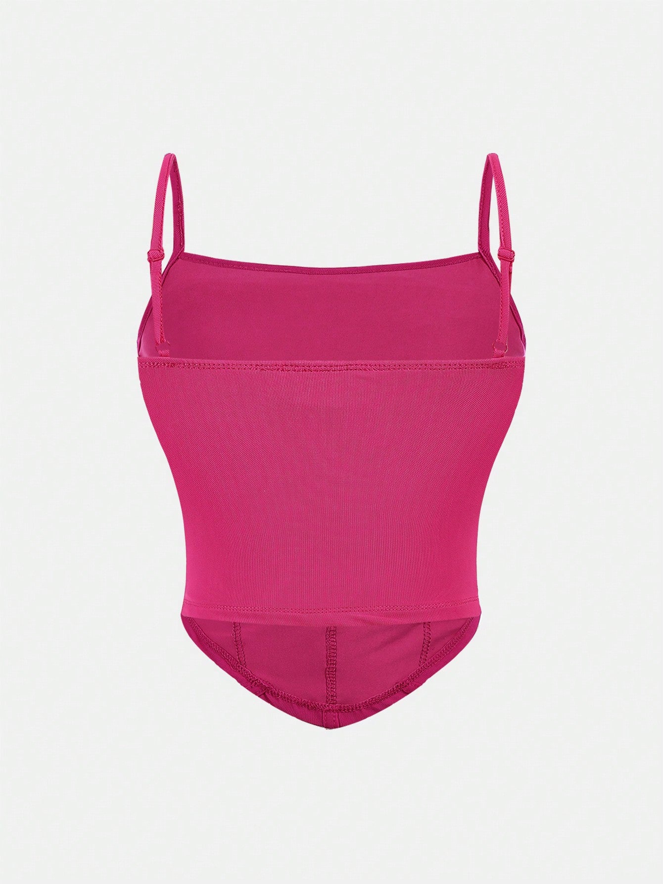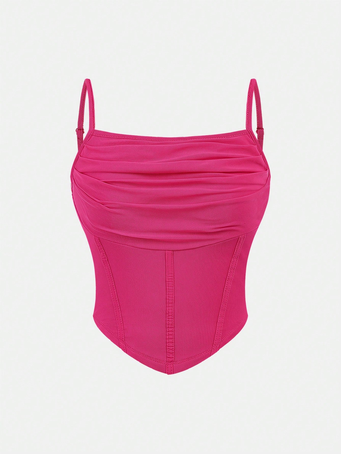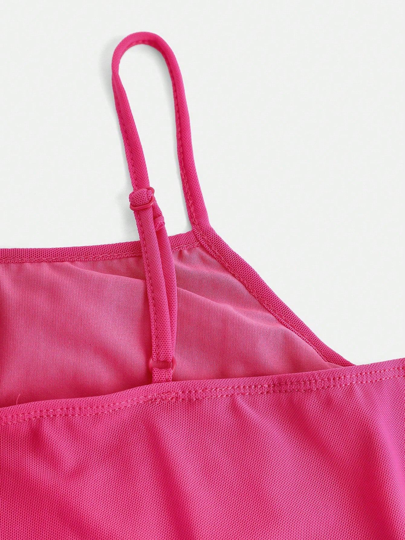 SHEIN Blusa casual de tirantes de punto con fruncidos y malla tejida para adolescente