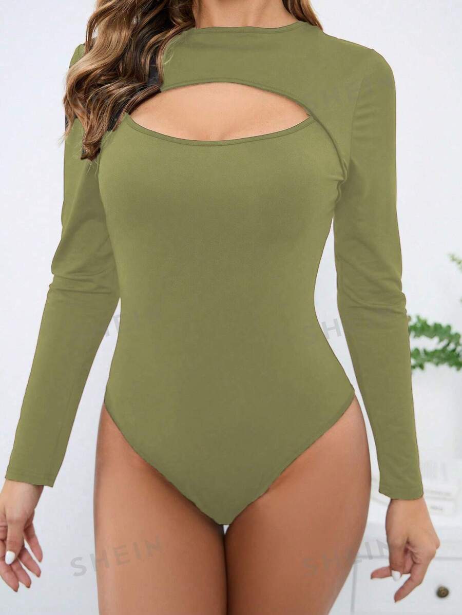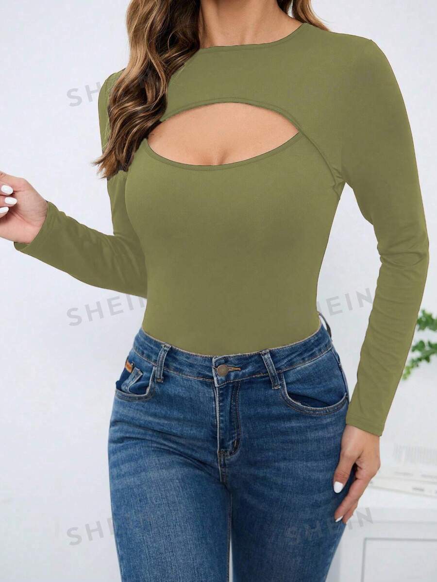 SHEIN Essnce Monos De Manga Larga Con Cuello Redondo Para Mujer Y Con Huecos