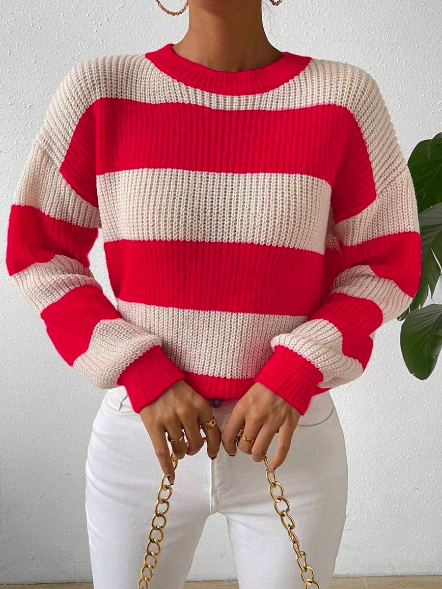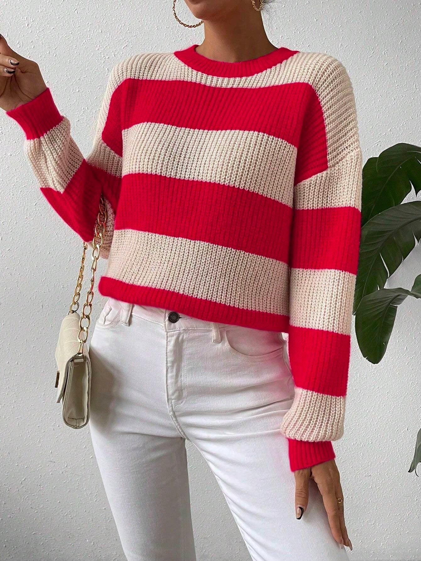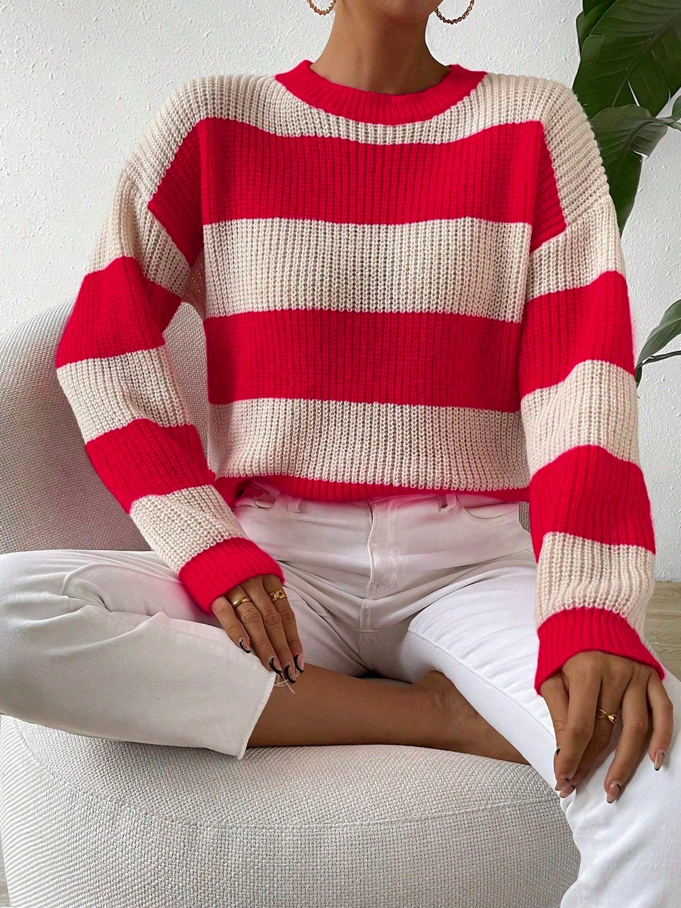 SHEIN Essnce Suéter Con Hombros Caídos A Rayas Y Bloques De Color Para Mujer