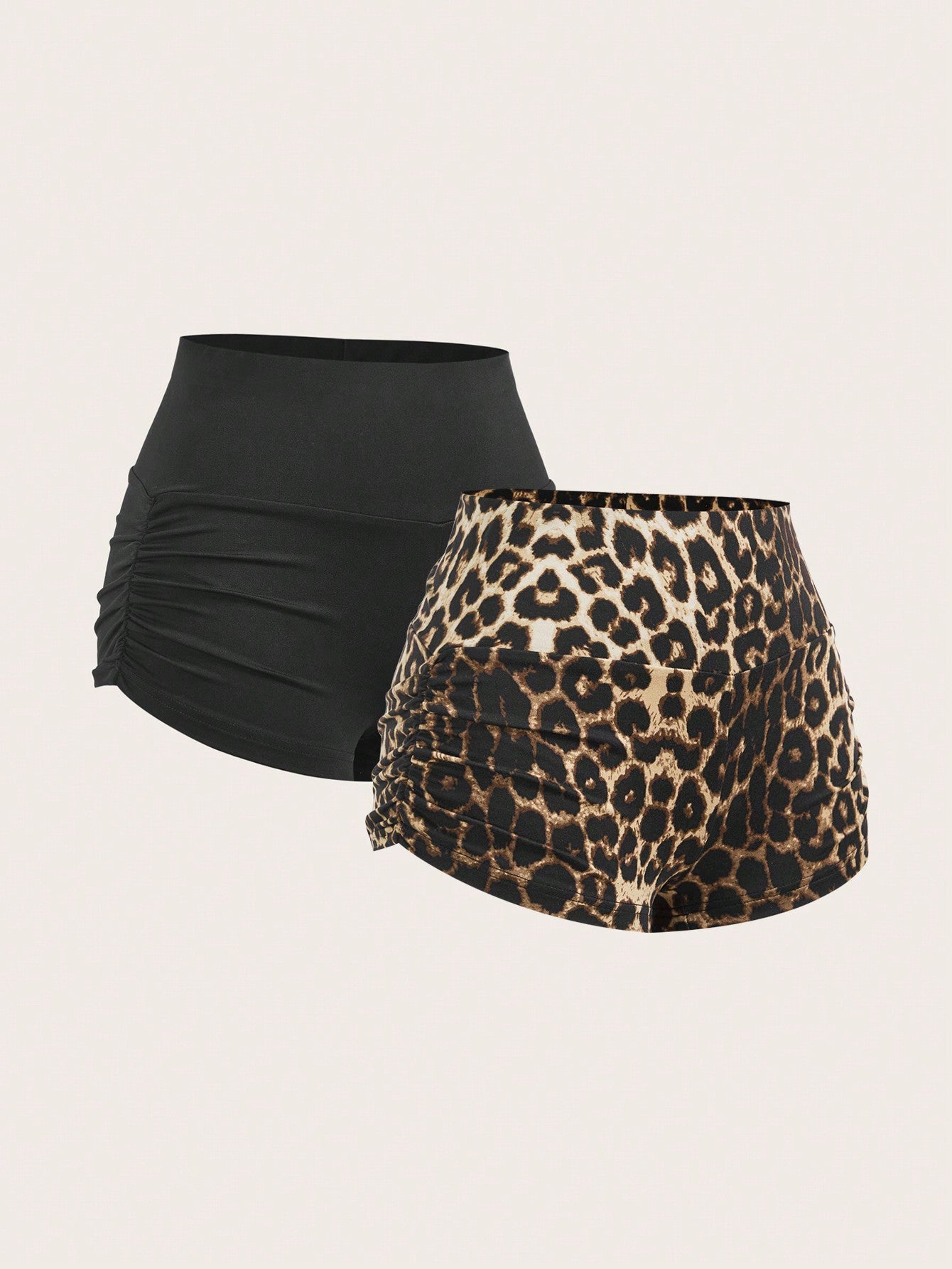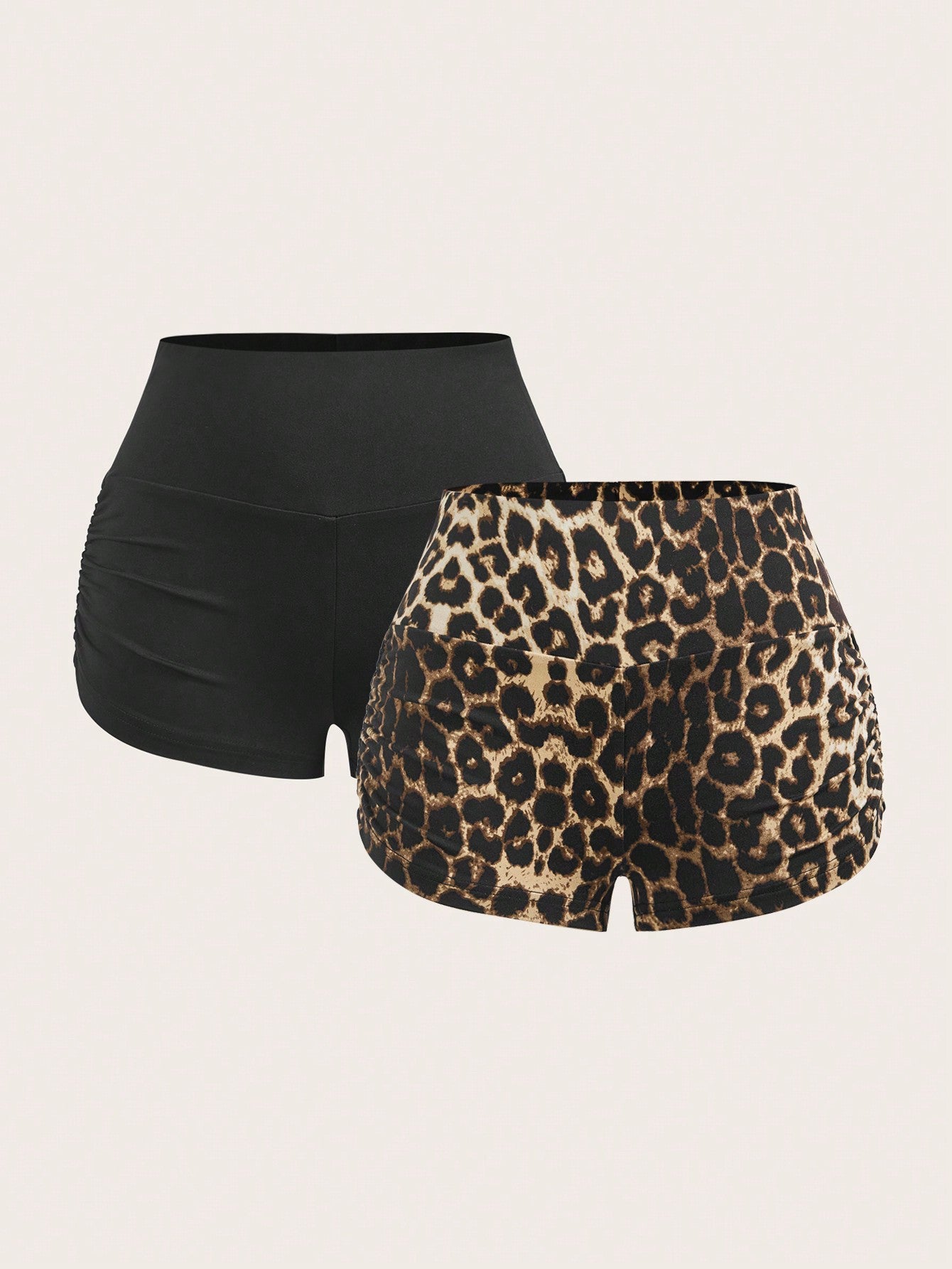 SHEIN EZwear Mallas ajustadas de ciclismo de punto multicolor para mujer