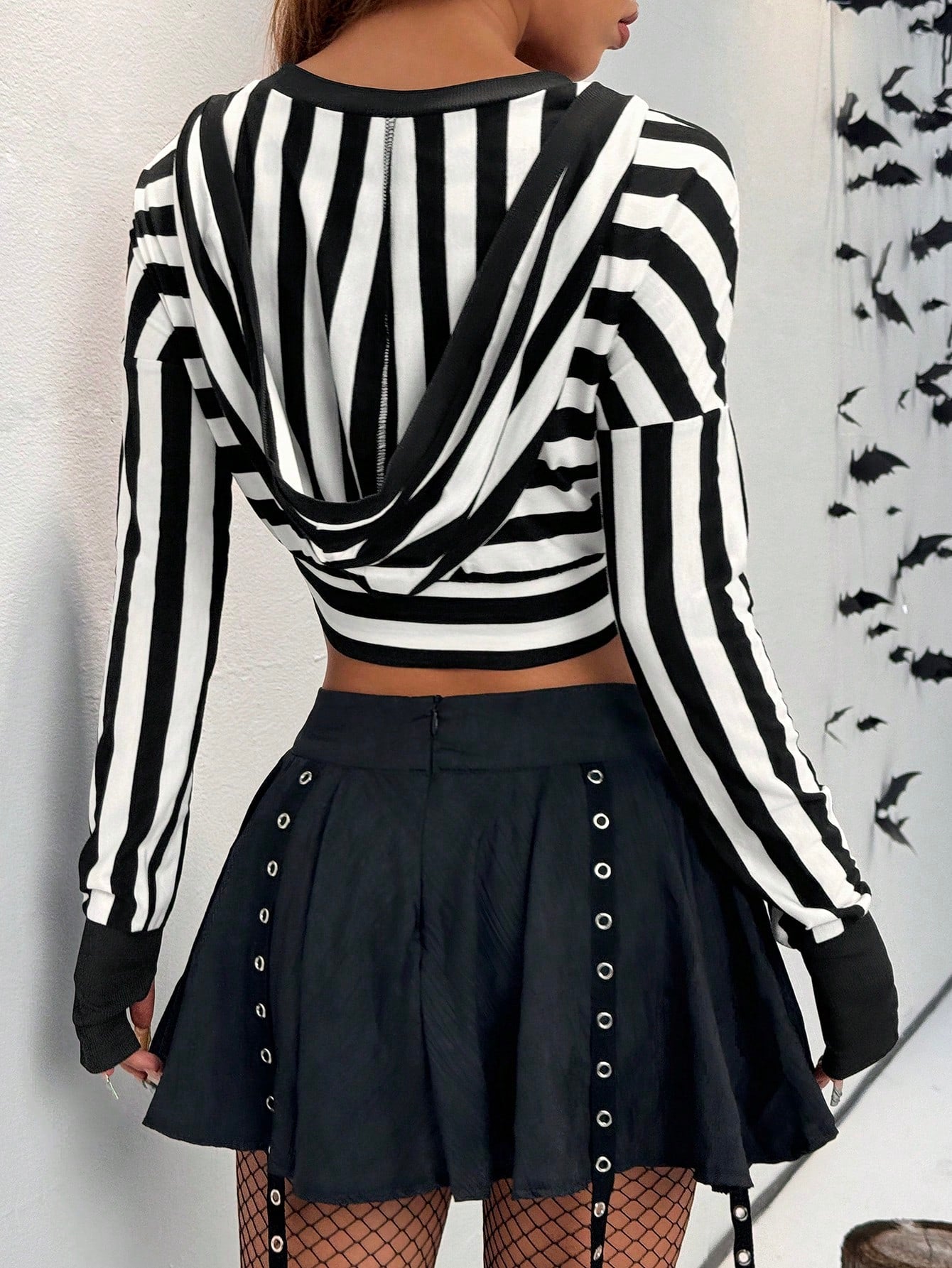 SHEIN EZwear Sudadera con capucha de manga larga con cuello en V a rayas para mujeres, Primavera Otoño