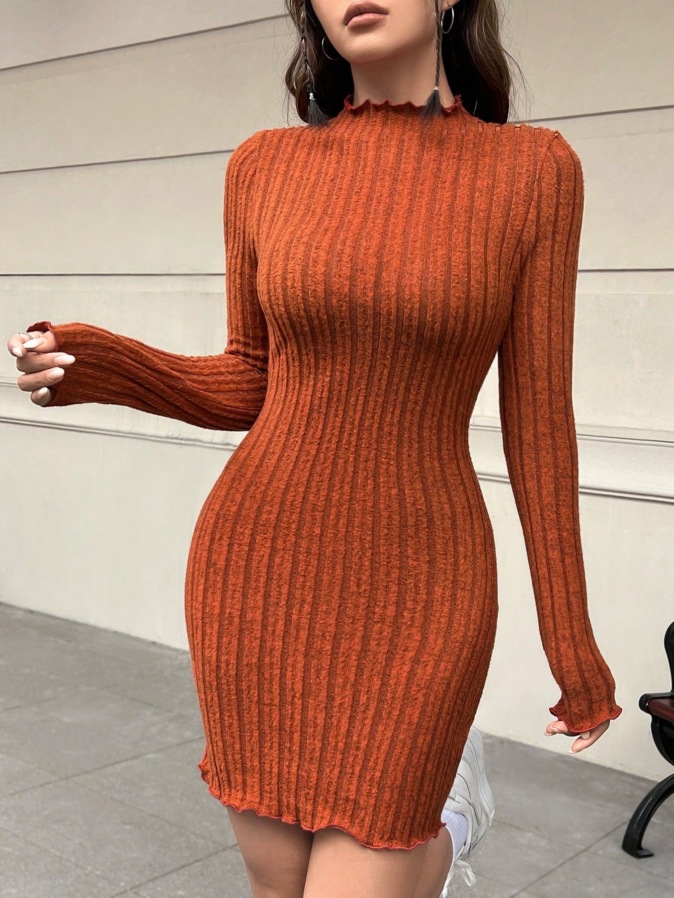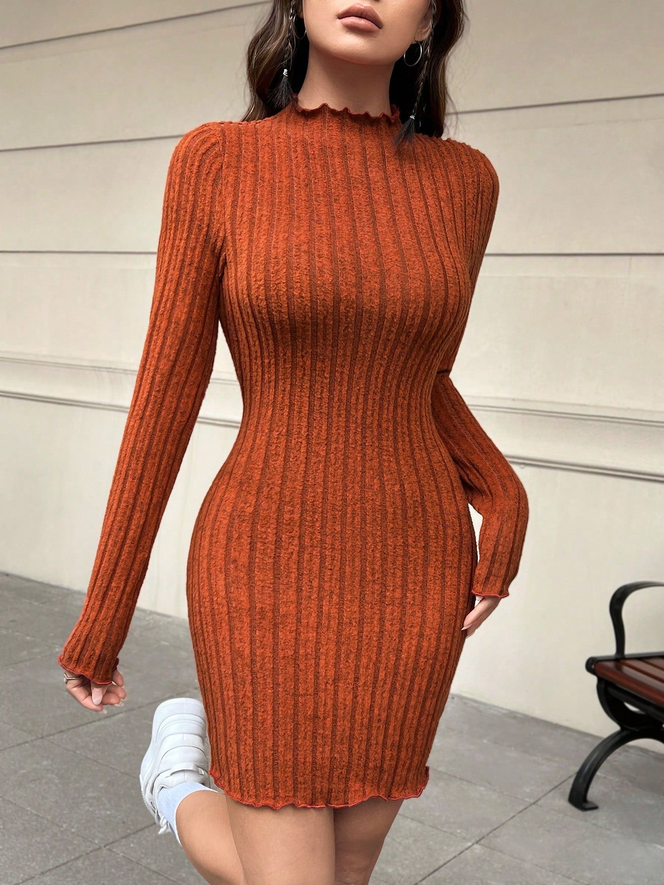 SHEIN EZwear Vestido Tubo De Manga Larga Para Mujer En Tejido De Punto Color Caqui