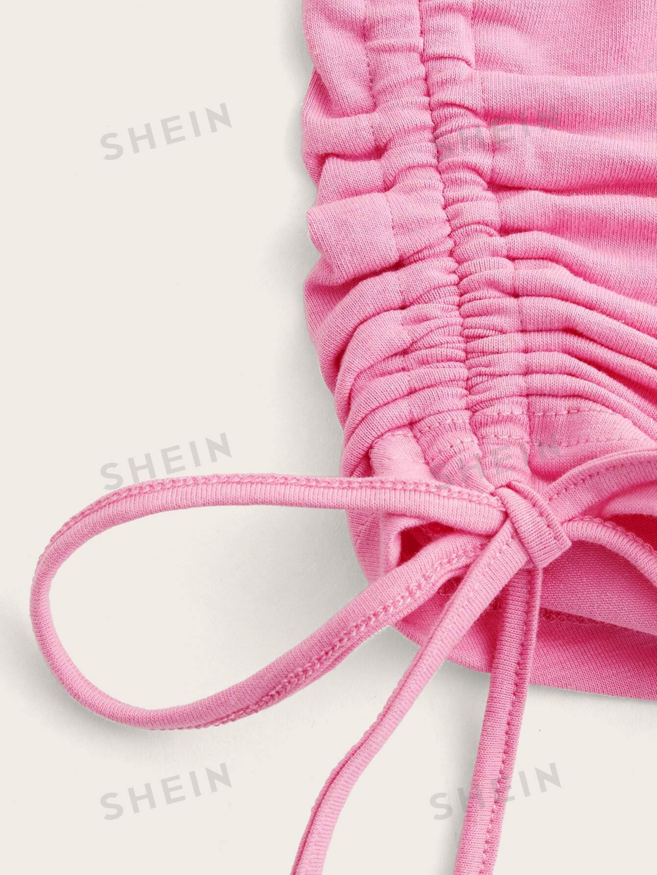 SHEIN ICON Camiseta corta con diamante de imitación con estampado de letra con cordón lateral