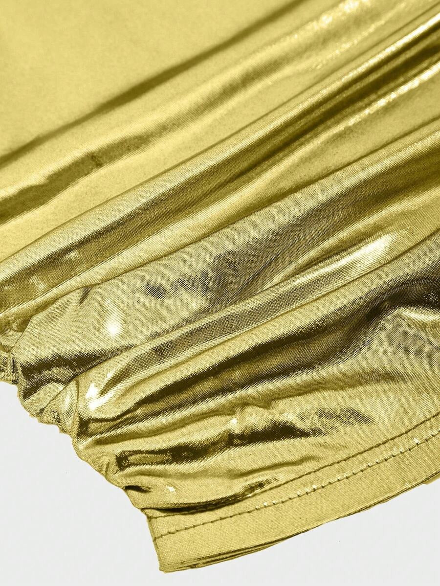 SHEIN ICON Camiseta De Manga Larga Con Pliegues Y Ajuste Delgado De Aspecto Metálico Mujer