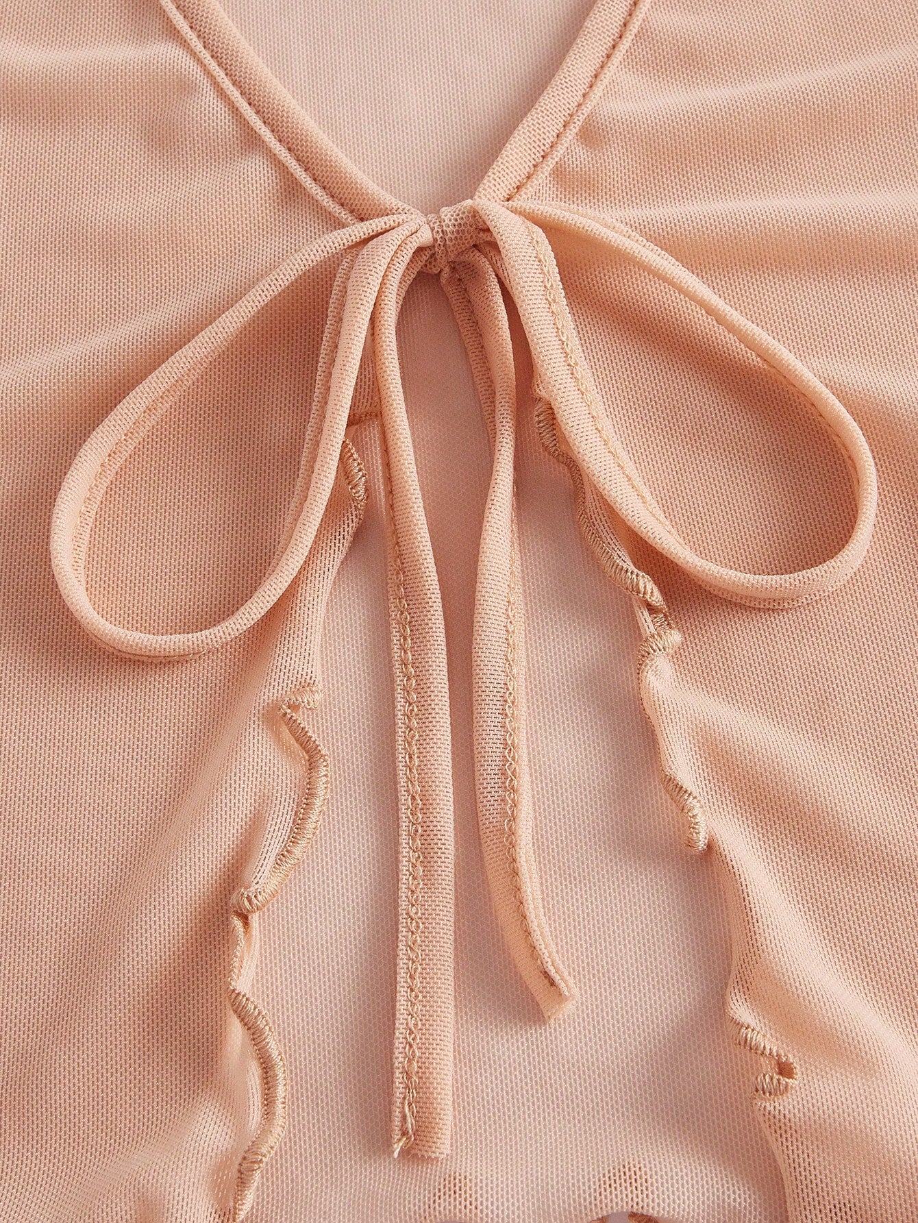 SHEIN ICON Top con cordón delantero ribete en forma de lechuga de malla