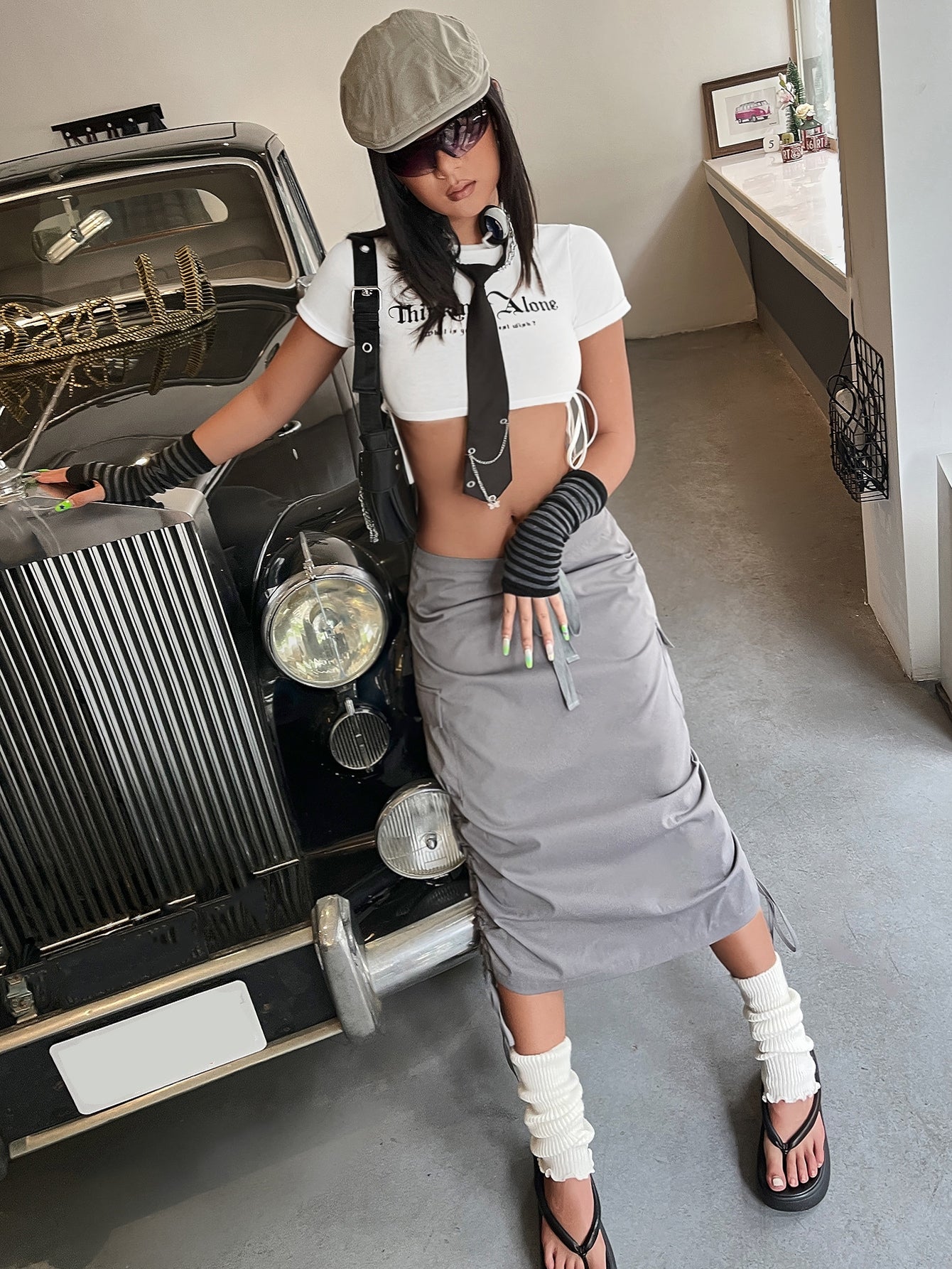 SHEIN ICON Top corto con gráfico de lema, cordón ajustable en los lados, pensando solo ¿Cuál es tu mayor deseo?