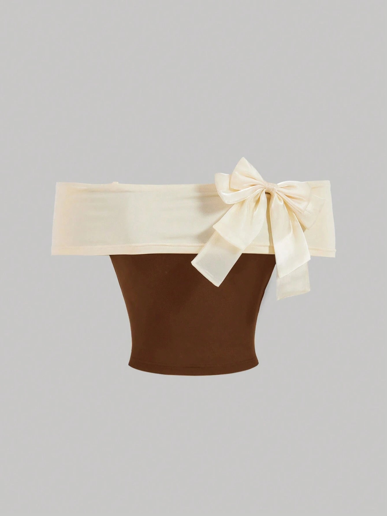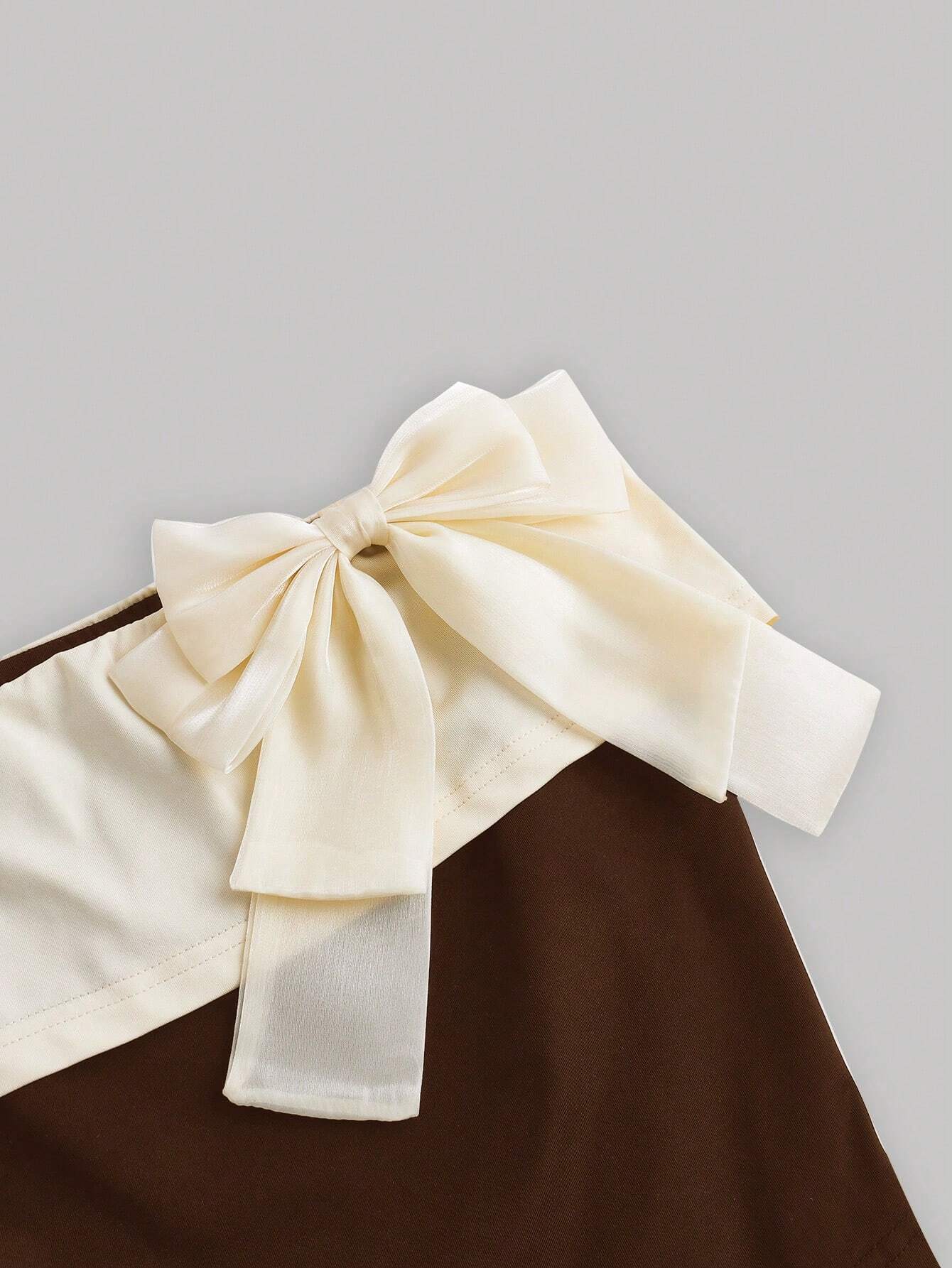 SHEIN MOD Blusa de hombros descubiertos de mujer de verano con bloque de color y decoración de moño