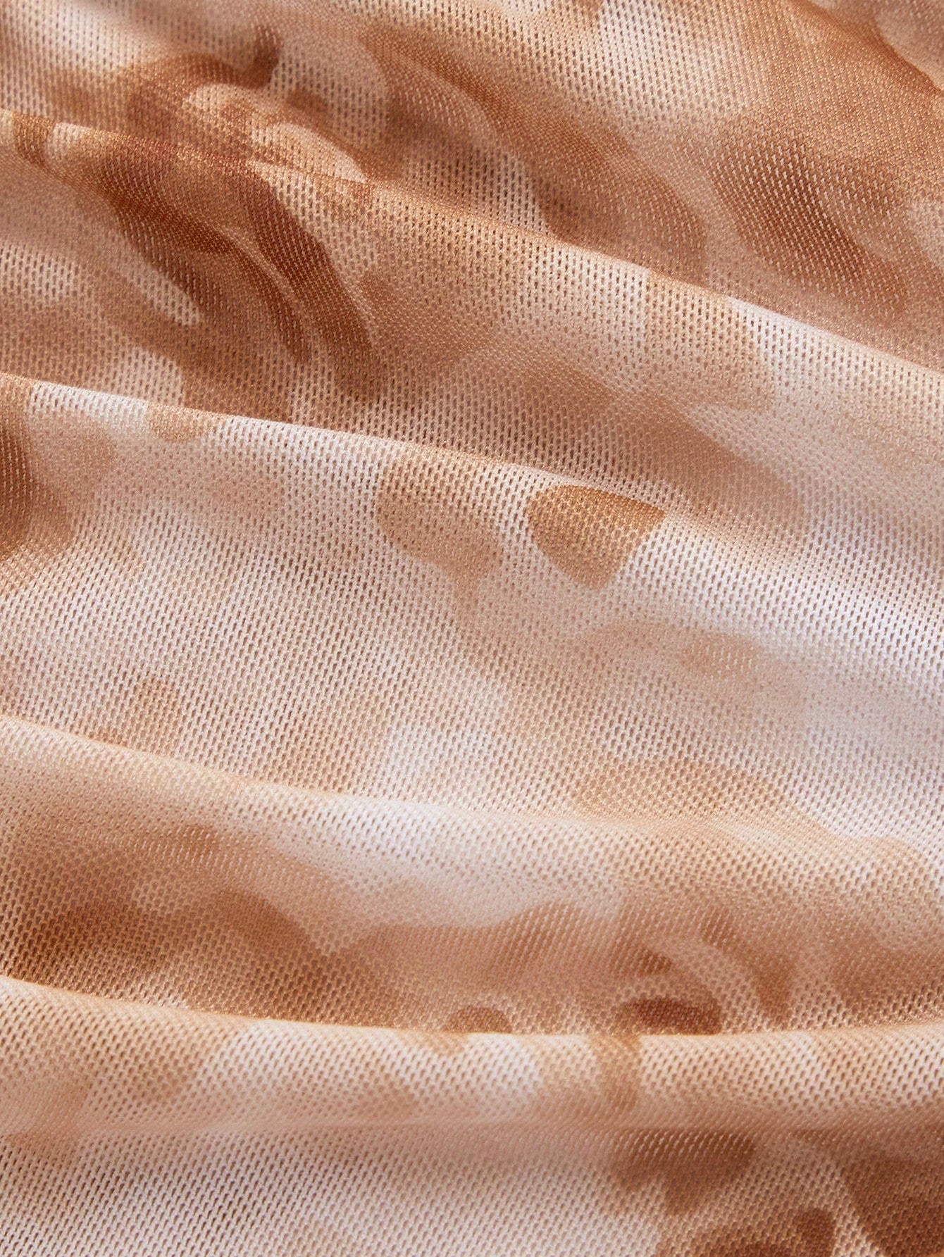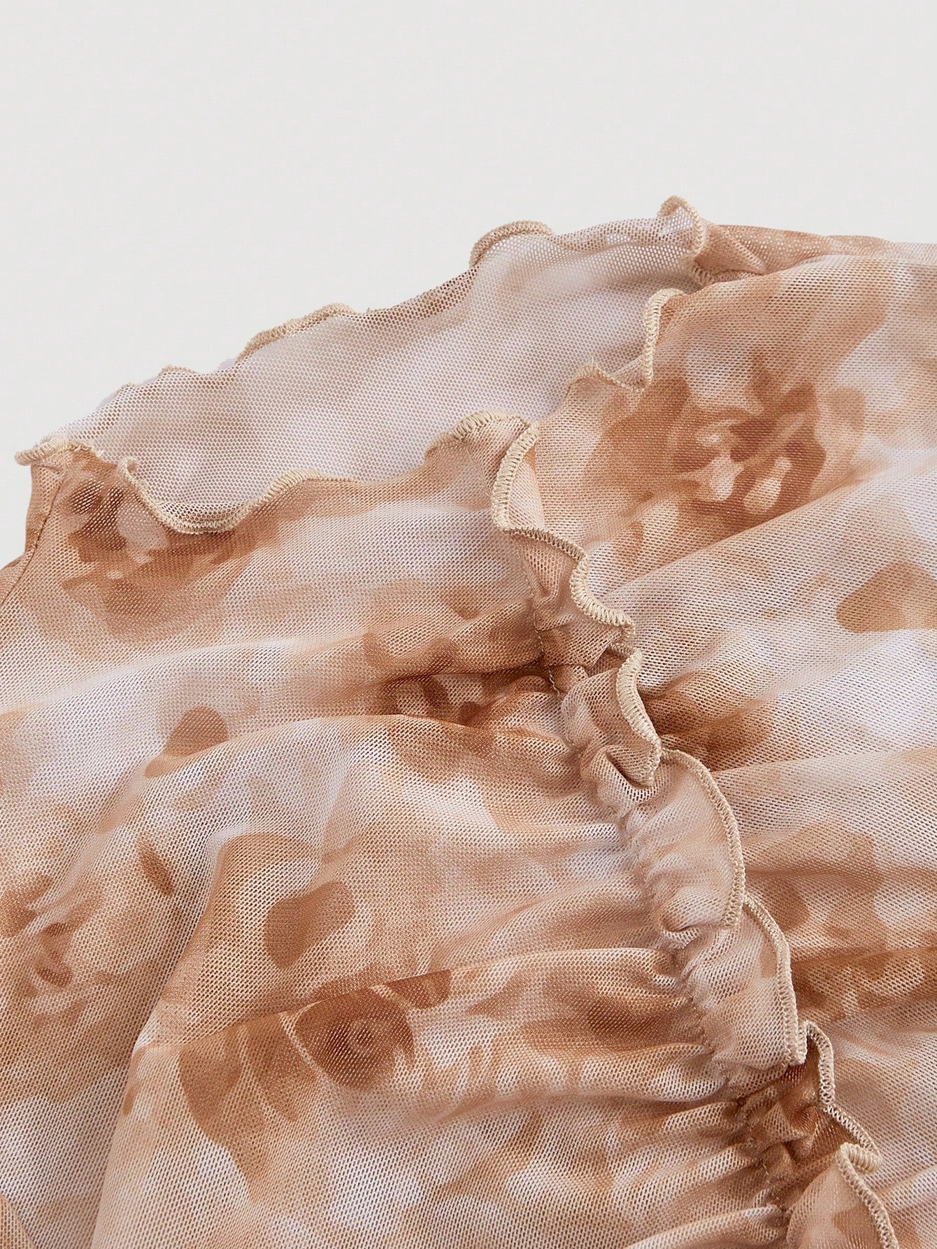 SHEIN MOD Blusa de manga larga con pliegues y estampado aleatorio para mujeres