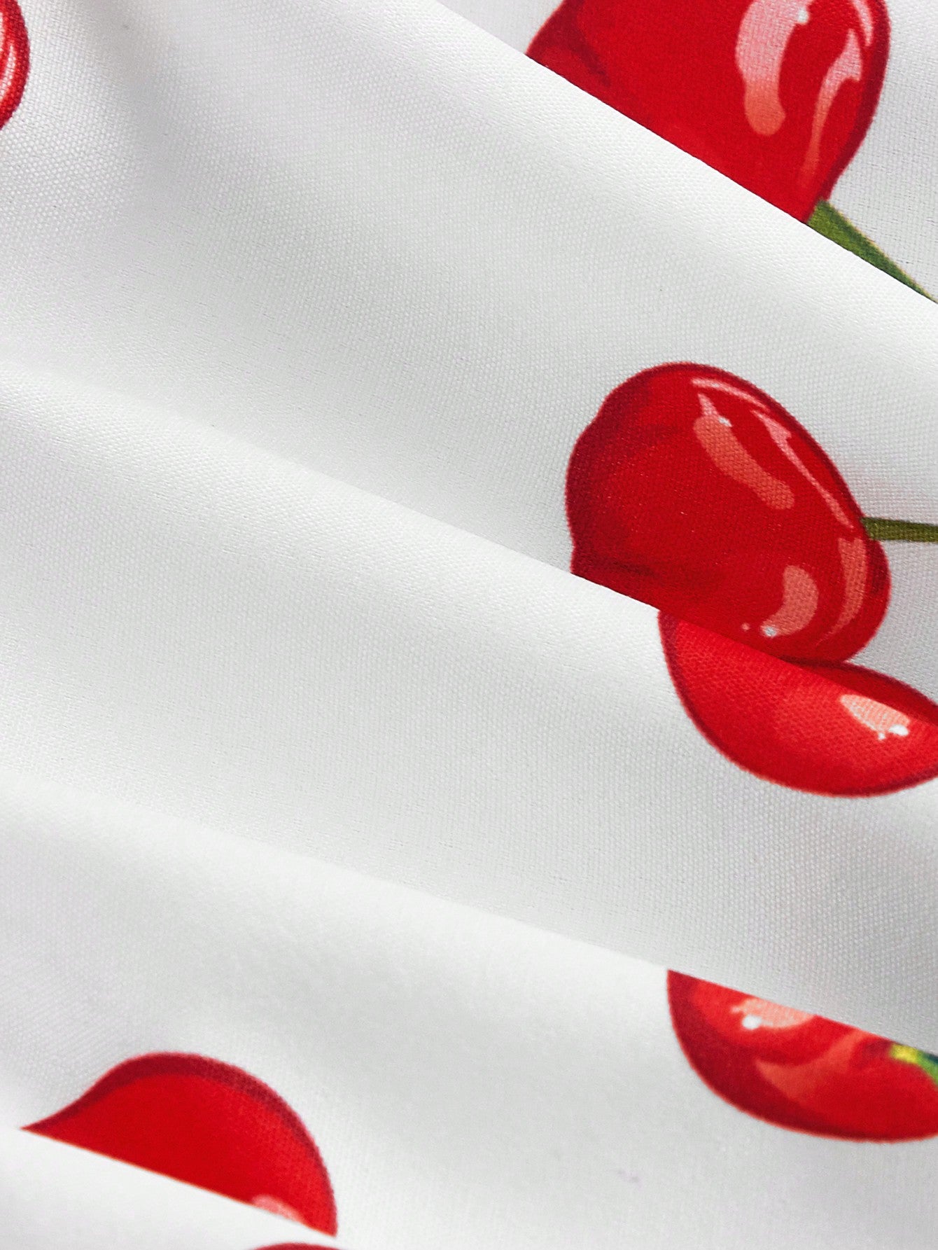 SHEIN MOD Camisa de mujer con estampado de cerezas y lazo en la parte delantera, corta, para vacaciones de verano