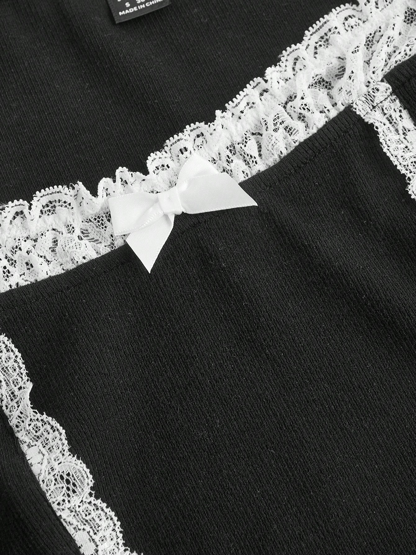 SHEIN MOD Camiseta casual de manga larga para mujer con cuello cuadrado, recortes, volantes y bloques de color negro y blanco, ideal para el Día de San Valentín