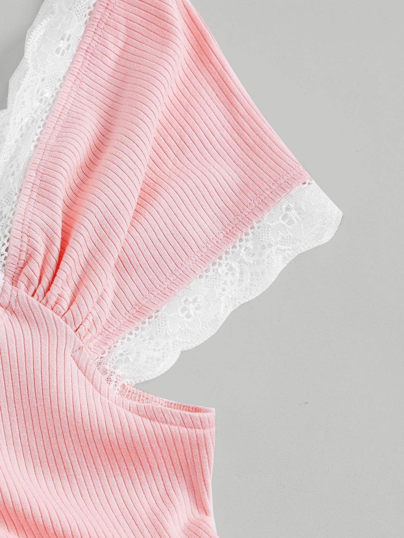 SHEIN MOD Camiseta con encaje en contraste con lazo delantero